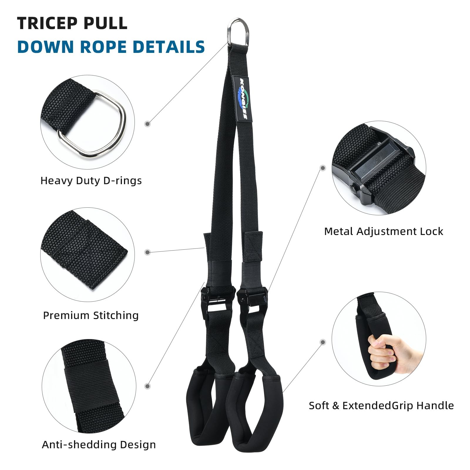 Adjustable Tricep Rope Cable Attachment, Tricep Pull Down Rope