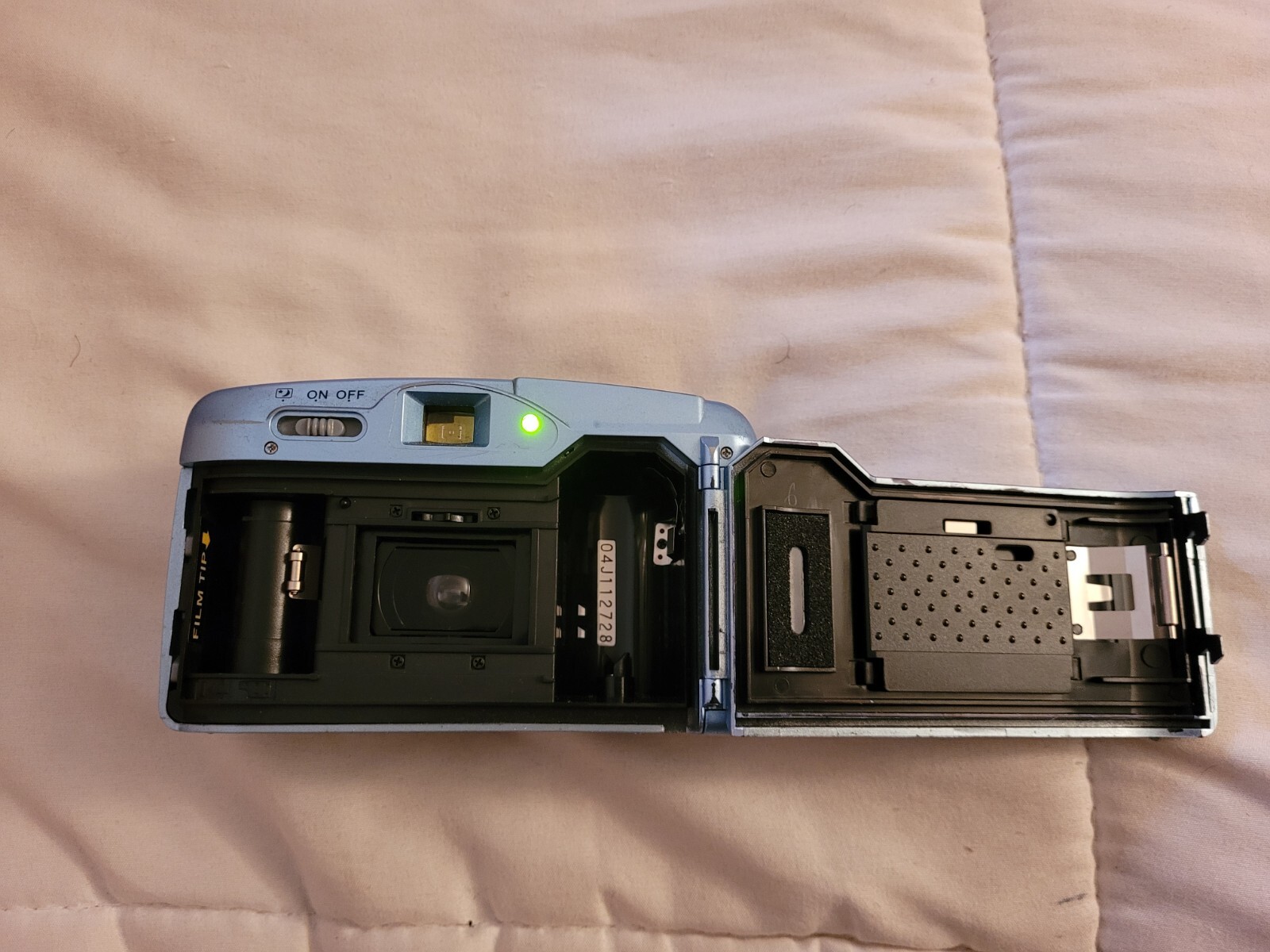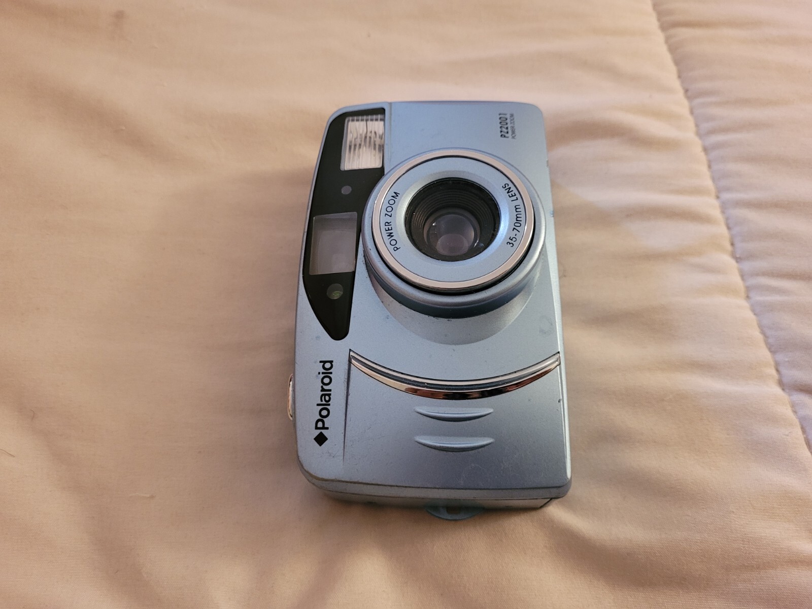 как выглядит Polaroid PZ2001 Power Zoom 35-70mm 2x Zoom Blue Camera For Parts Makes Noise фото