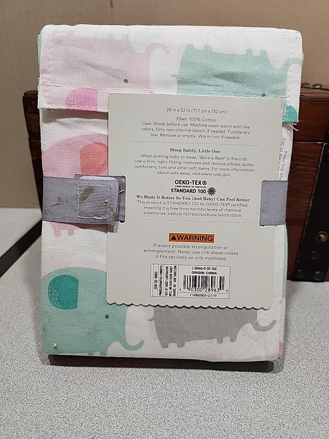 как выглядит Cloud Island Fitted Crib Sheet pink green elephants nursery new 28963 фото
