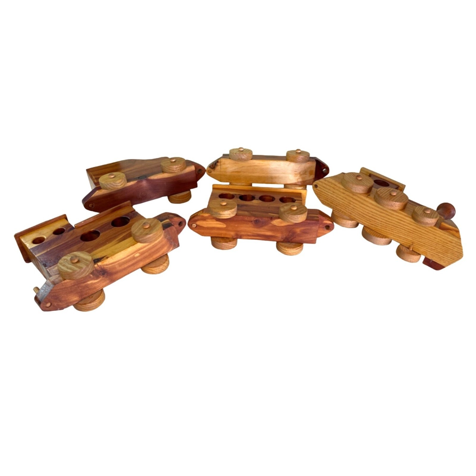 Wood Train Set Large 42 Long 5 Interlocking Cars Working Wheels Handcrafted