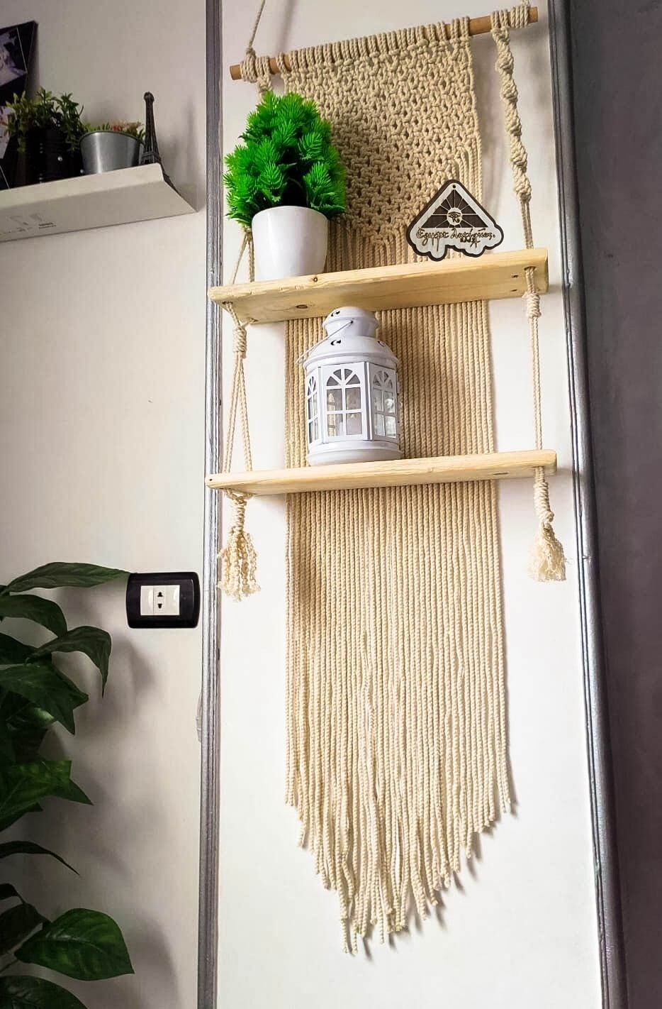 Macrame with two handmade wooden shelves from Egypt Antiques
