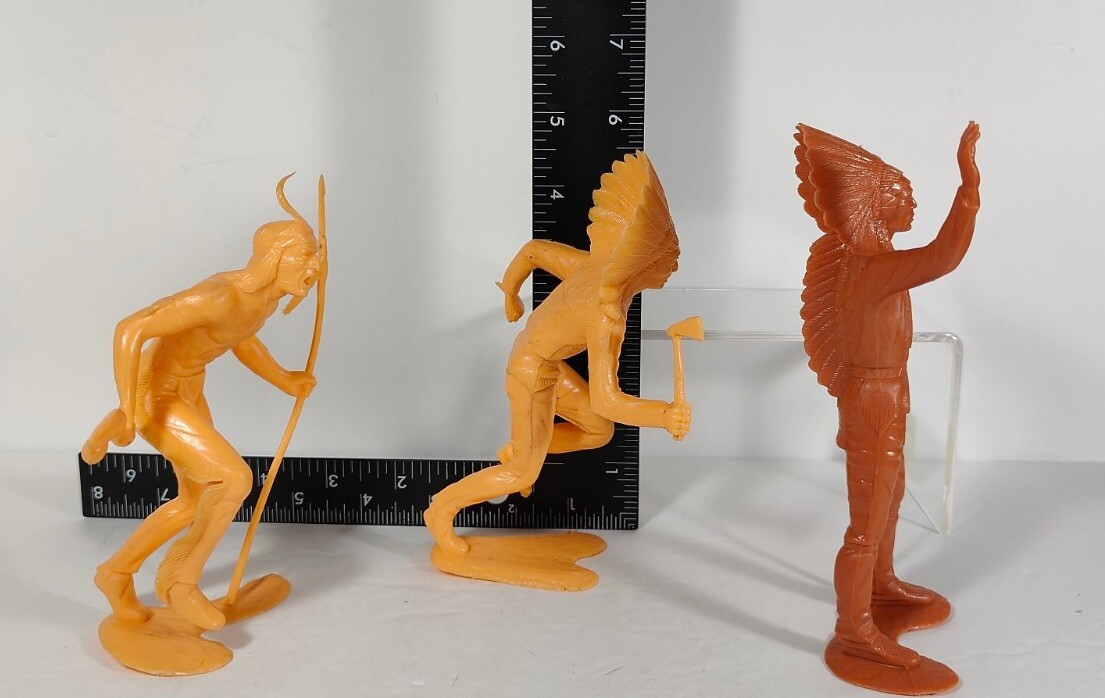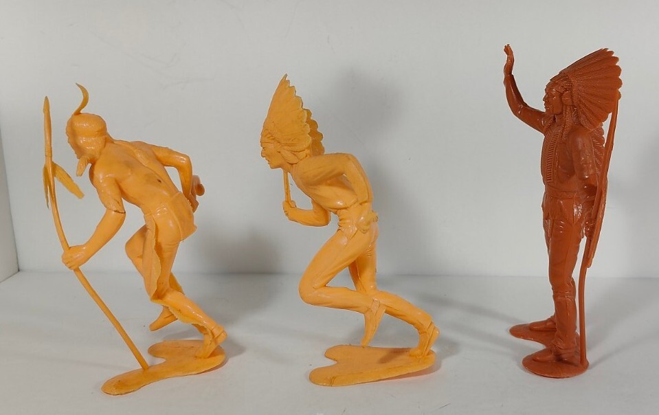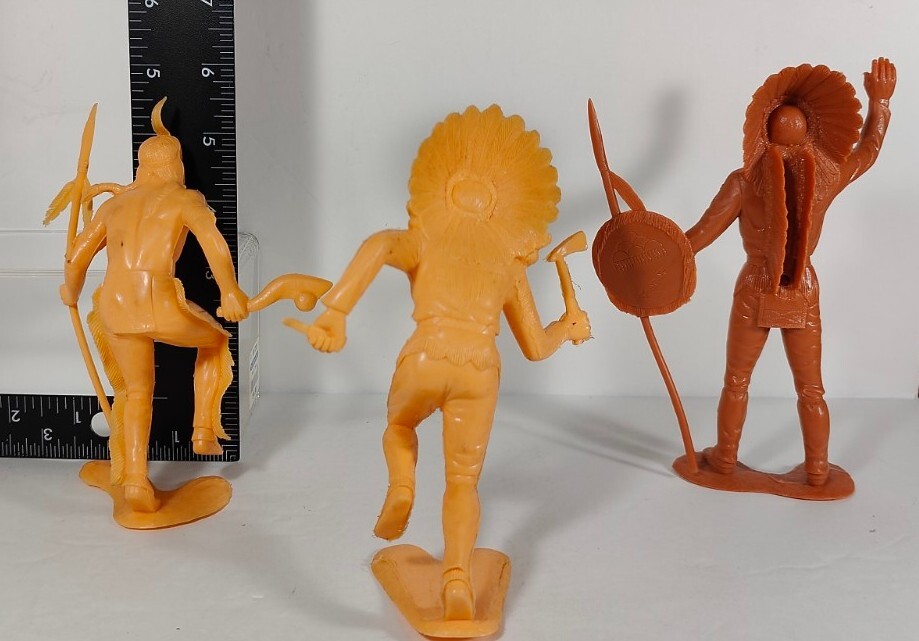 3X Lot Bundle 1964 Louis Marx Plastic 6 American Indian Warrior Set