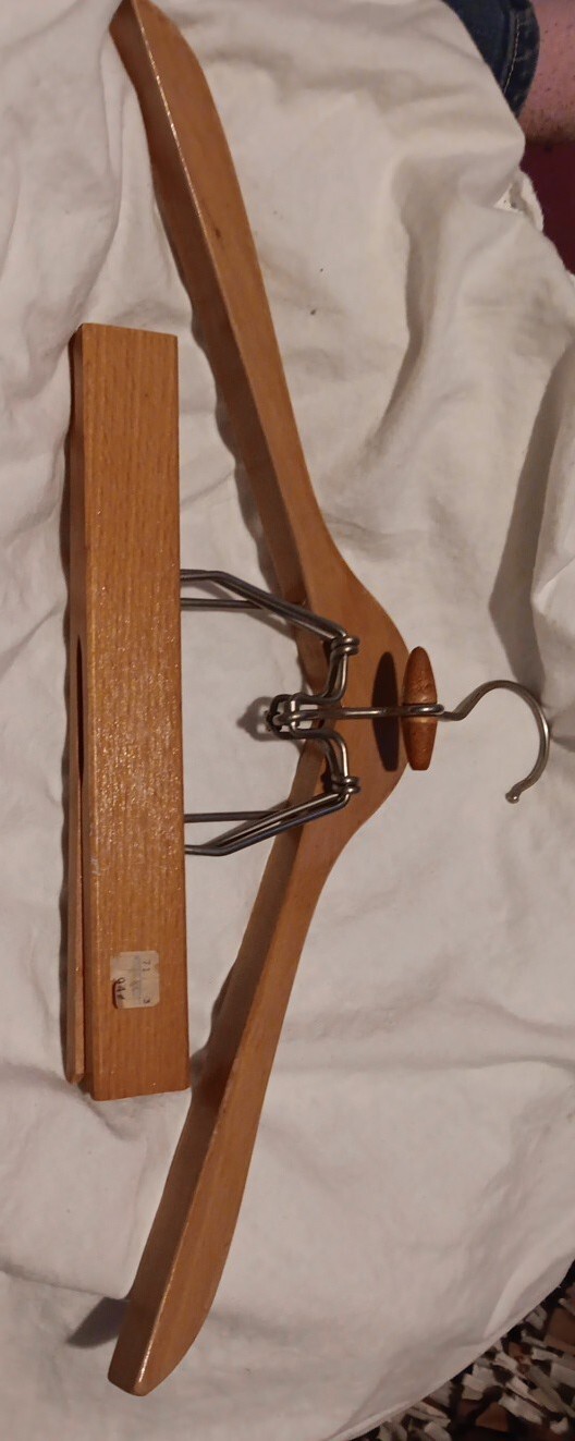 Vintage 17 Suit Hanger With 10 Trouser Clamp Heavy Natural Wooden