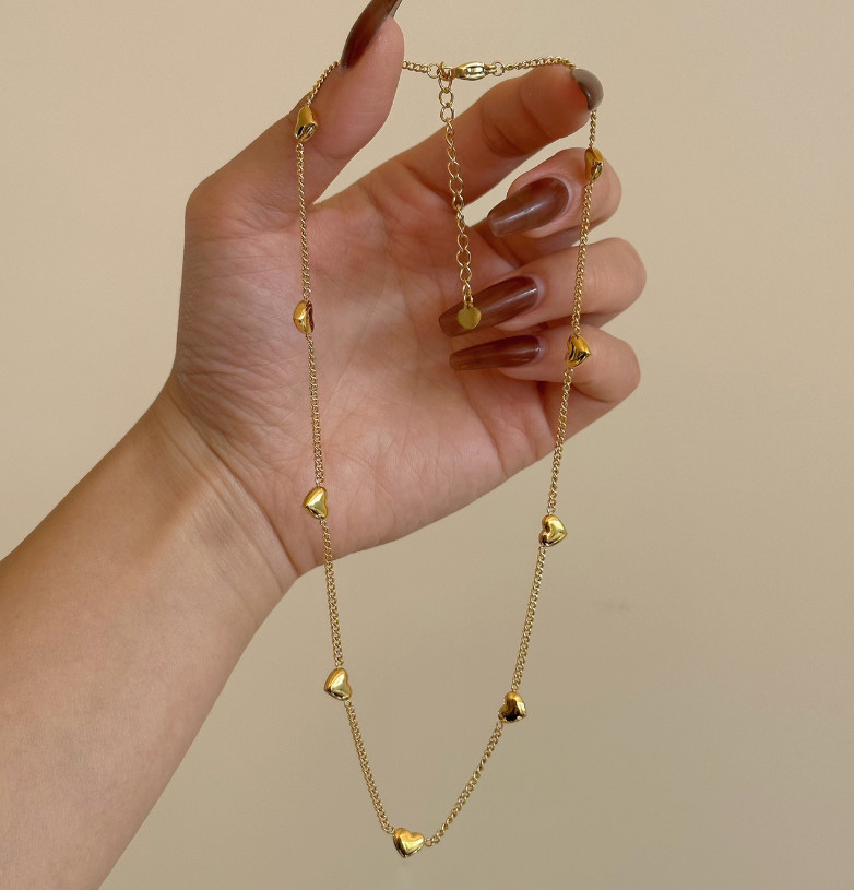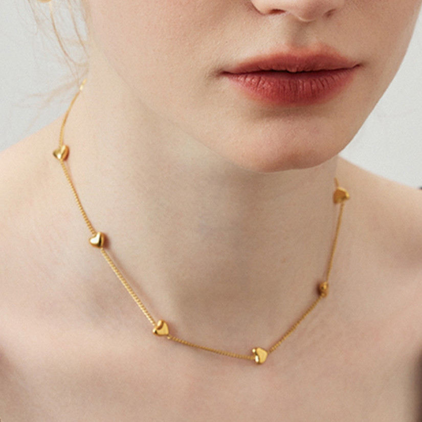 Women 14K Gold Stainless Steel Heart Pendant Chain Necklace Choker Gift AG