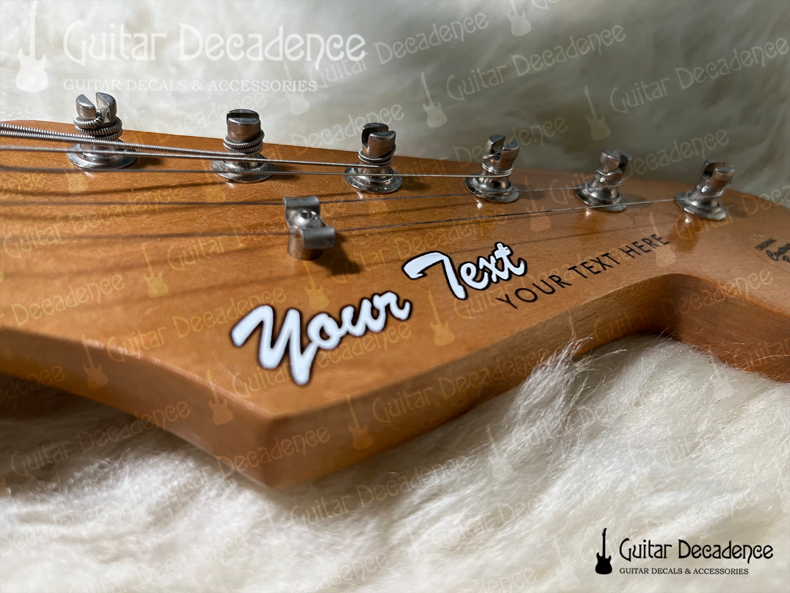 как выглядит Custom SILK-SCREEN Printed Metallic Two-Line Guitar Headstock Waterslide Decals фото