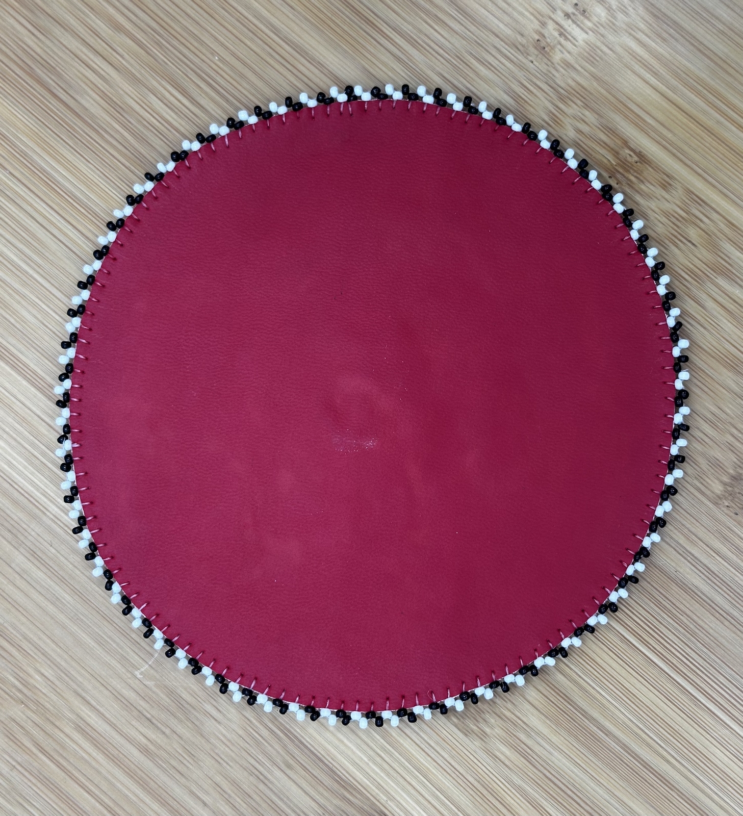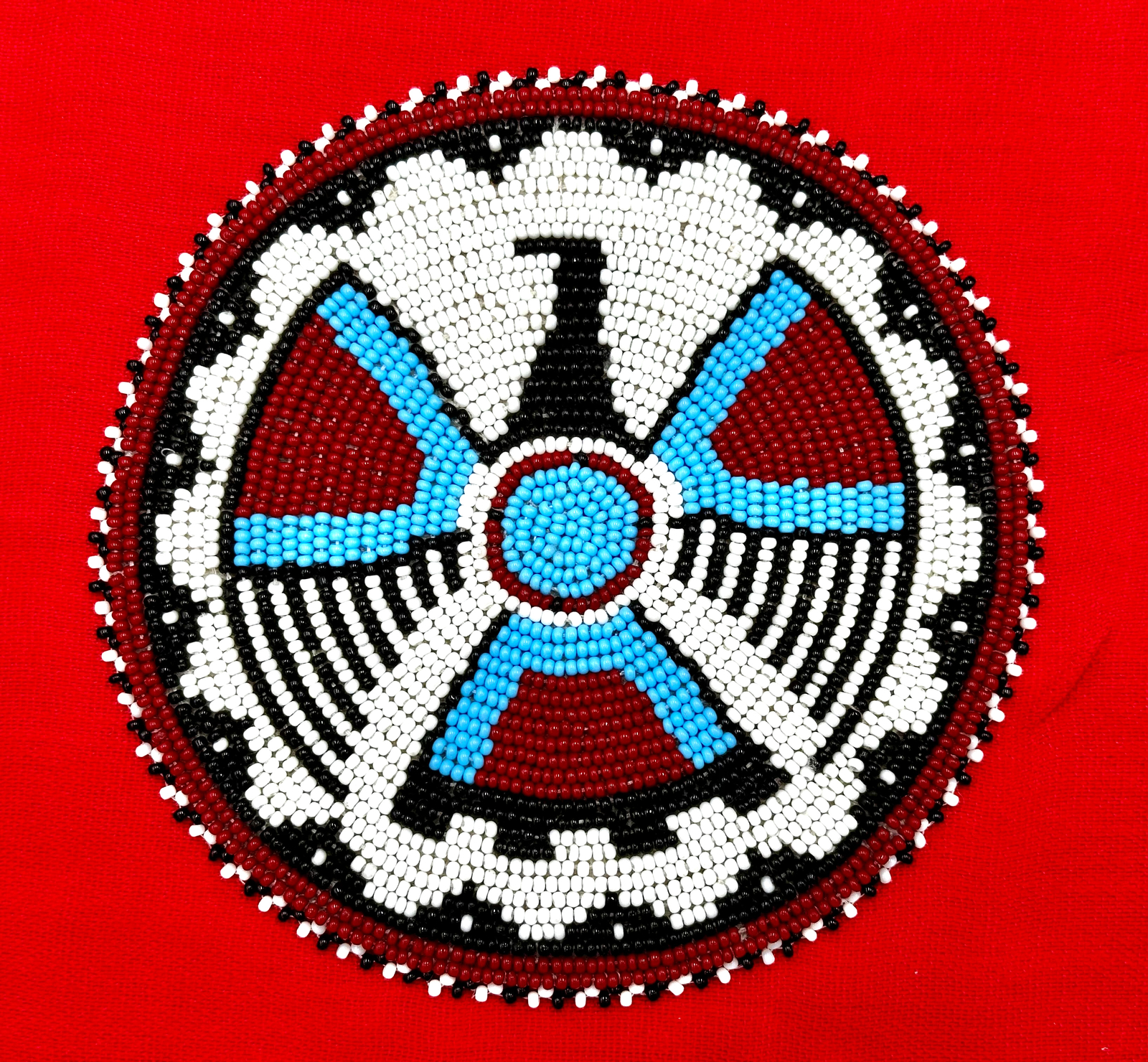 Handmade beaded 5 inch Thunderbird White Red rosette