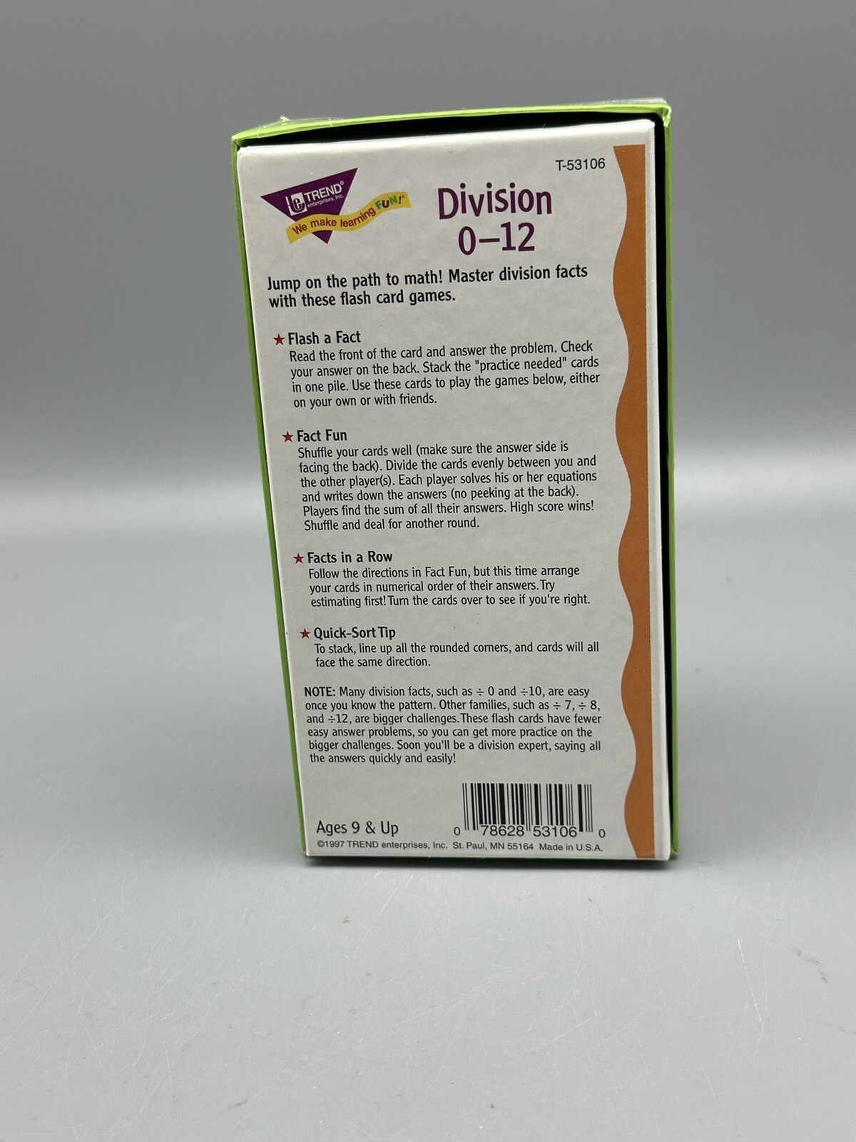 Flash Cards Division 0-12 by Trend Ages 9 1997 4B x17