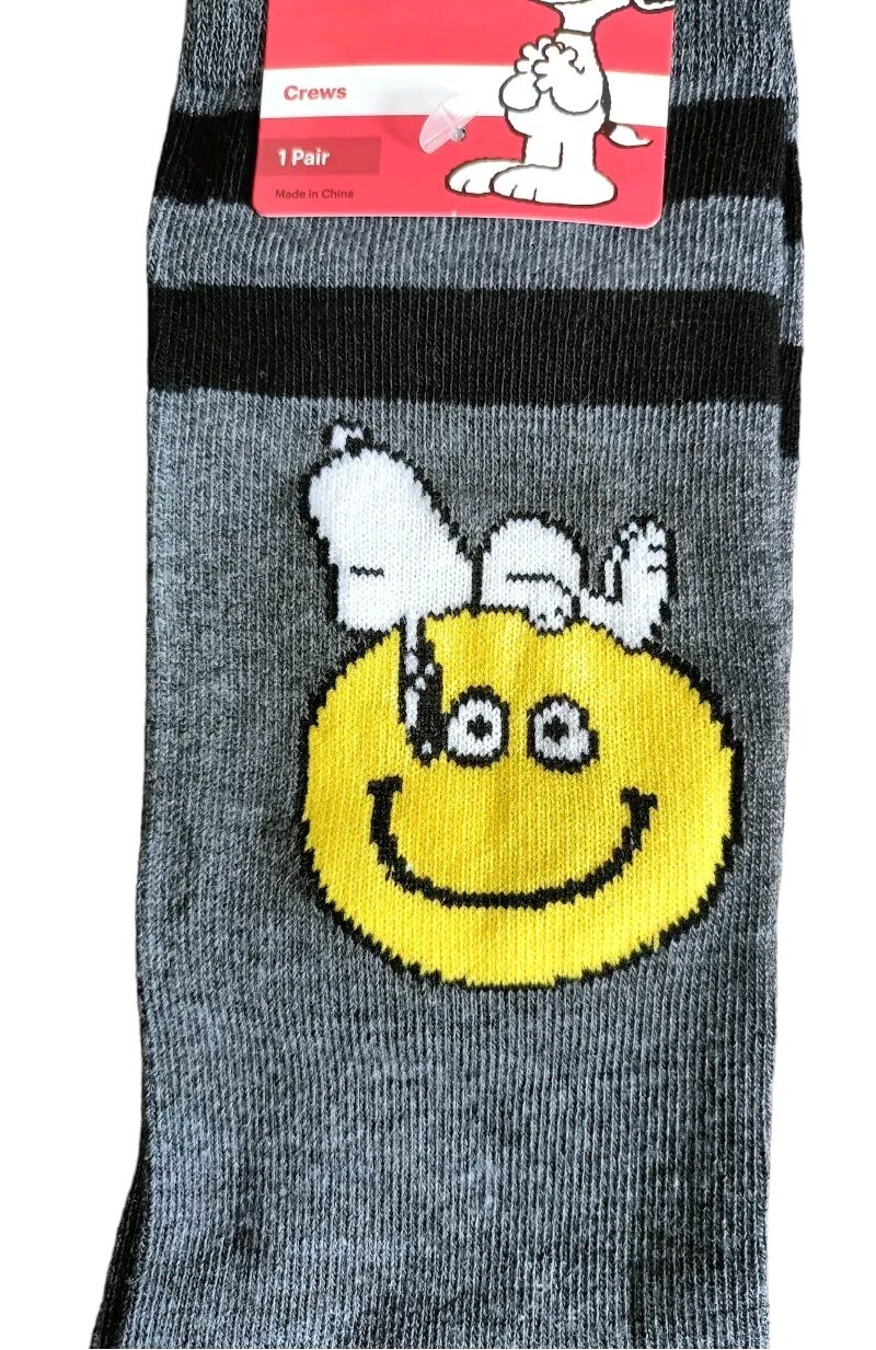 как выглядит Snoopy Crew Socks Size 6-12 Unisex Gray 1 Pair фото