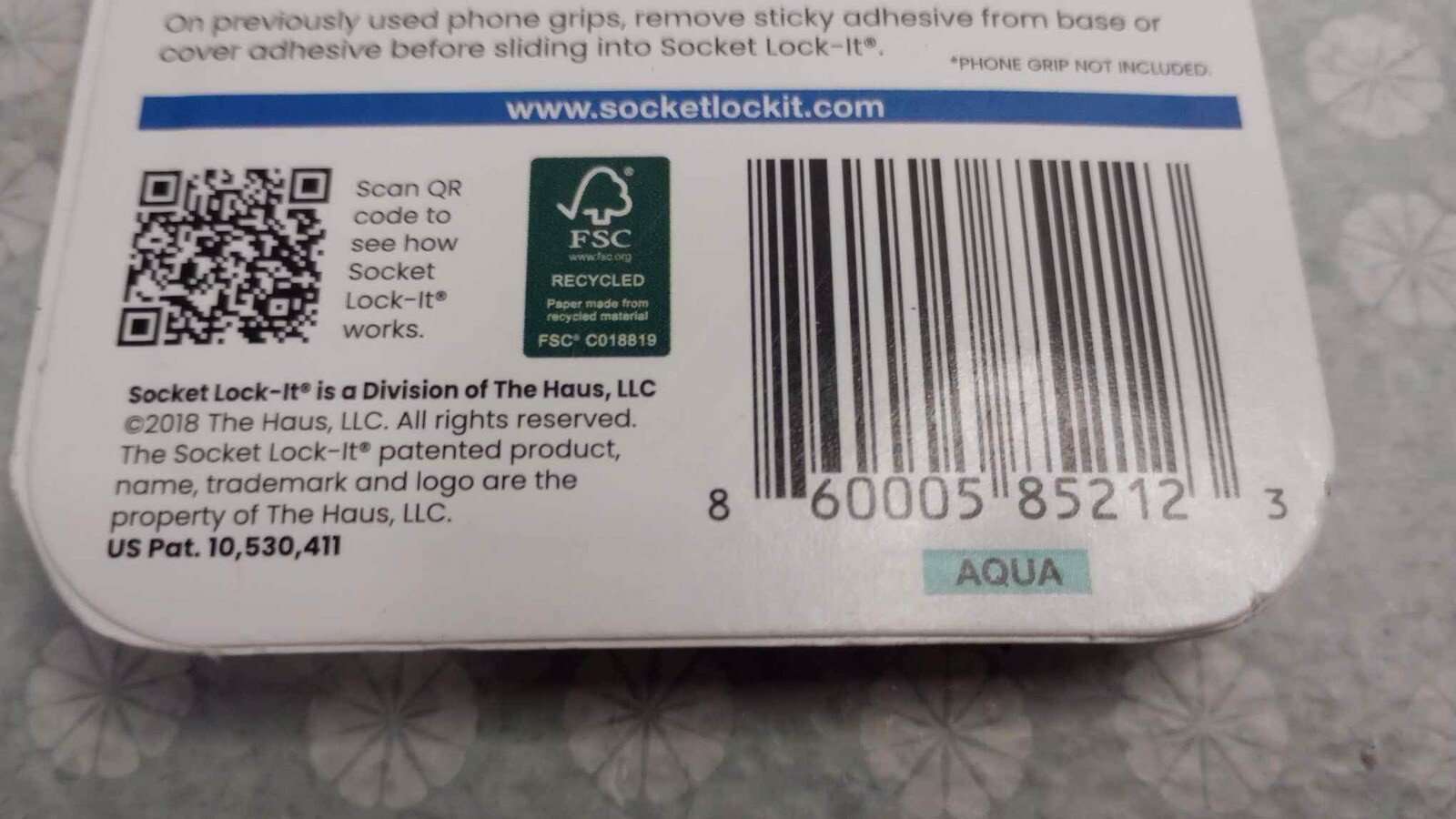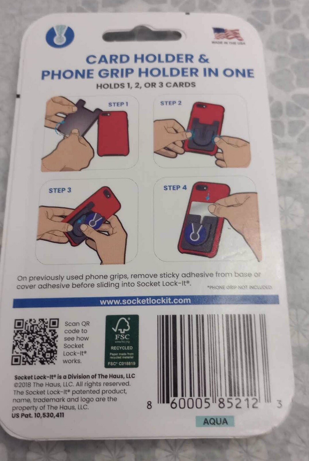 Socket Lock-It, Adhesive Card Holder Phone Grip Holder in One NEW SEALED Aqua