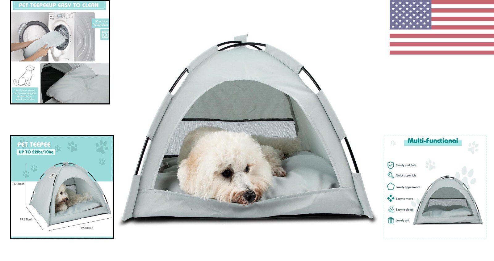Portable Cat Teepee Tent with Thick Cushion - Grey, Removable Washable
