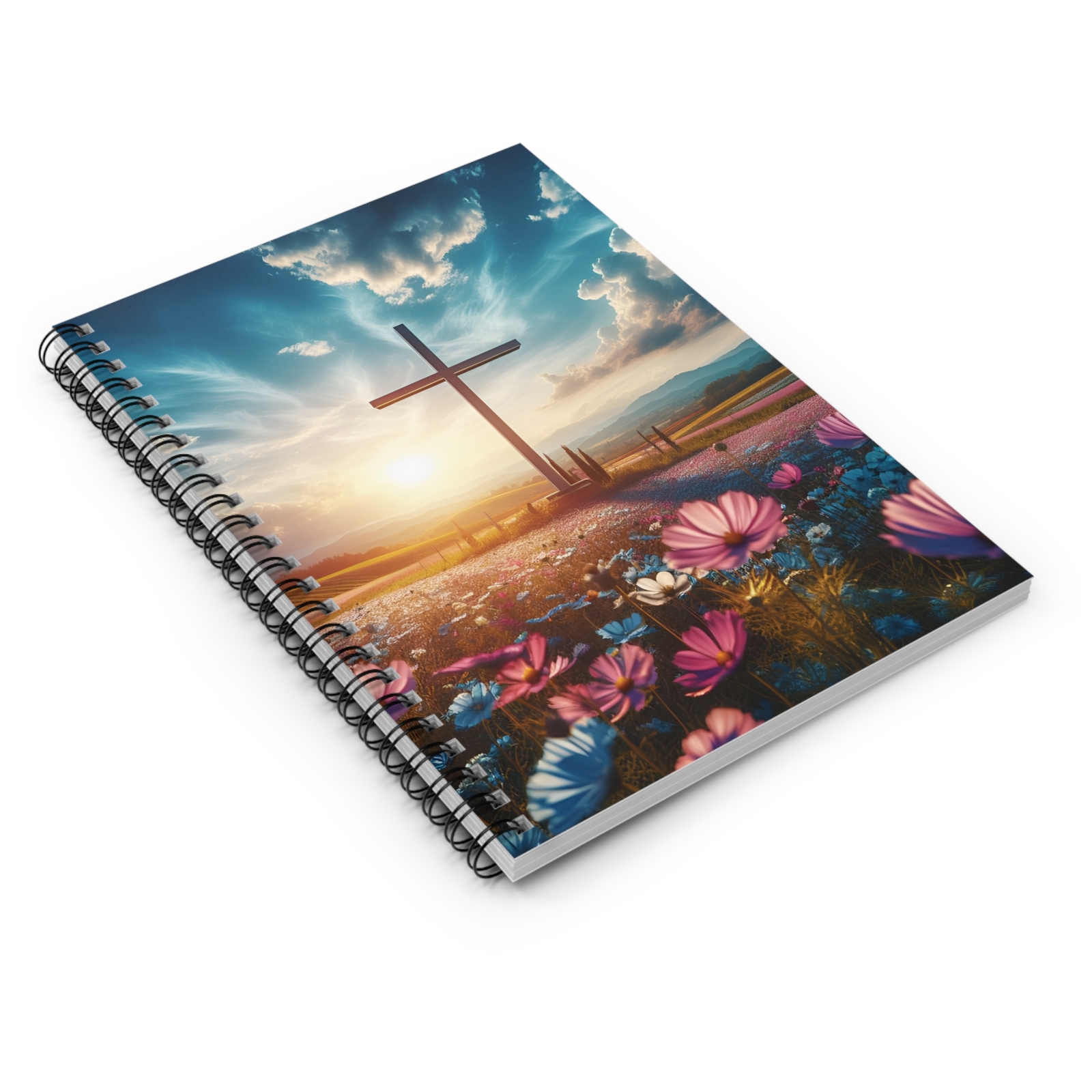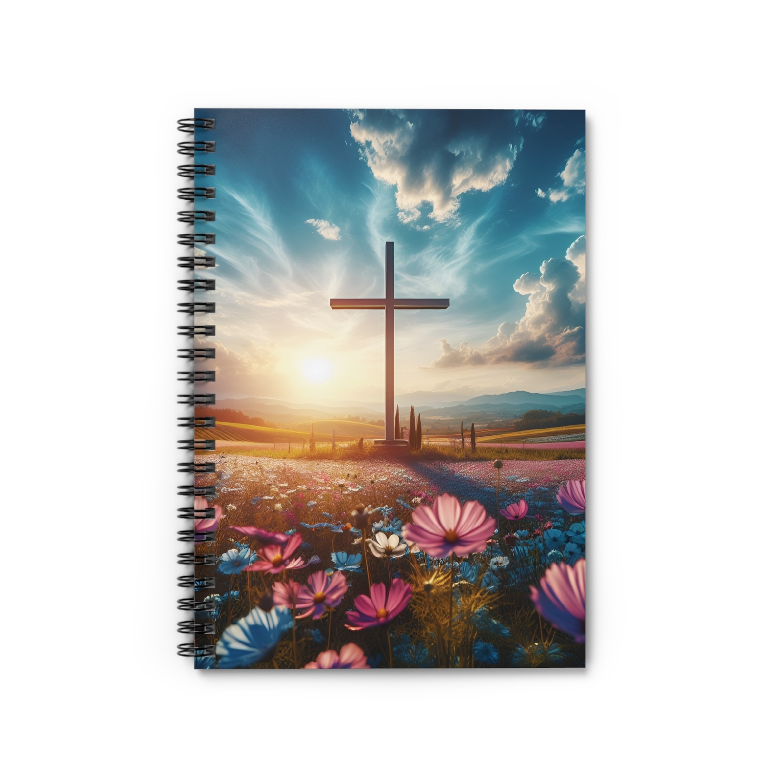 Spiral Notebook, Cross in Sunset, Christian Notebook, Faith, Beautiful Cross