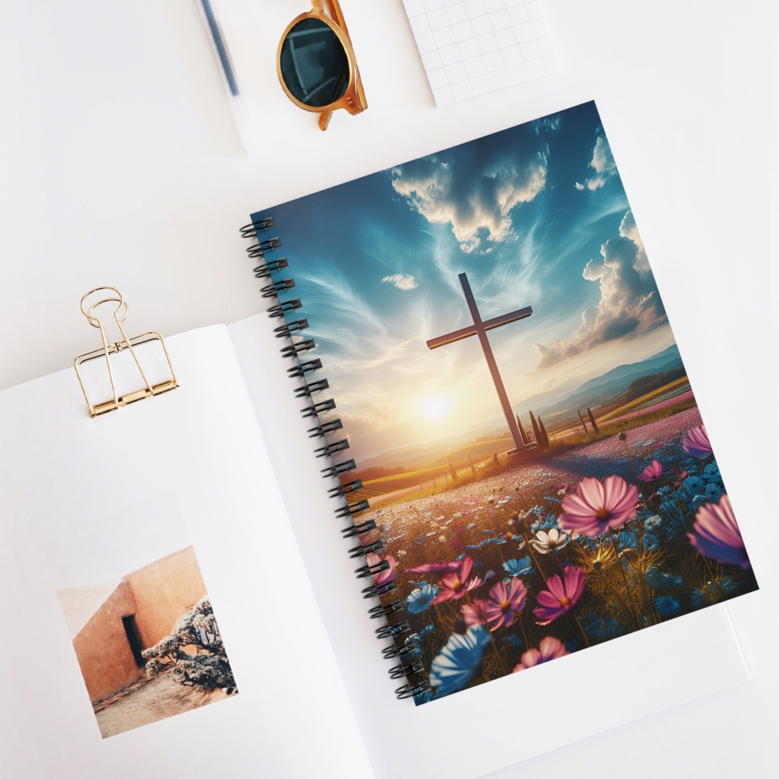 как выглядит Spiral Notebook, Cross in Sunset, Christian Notebook, Faith, Beautiful Cross фото
