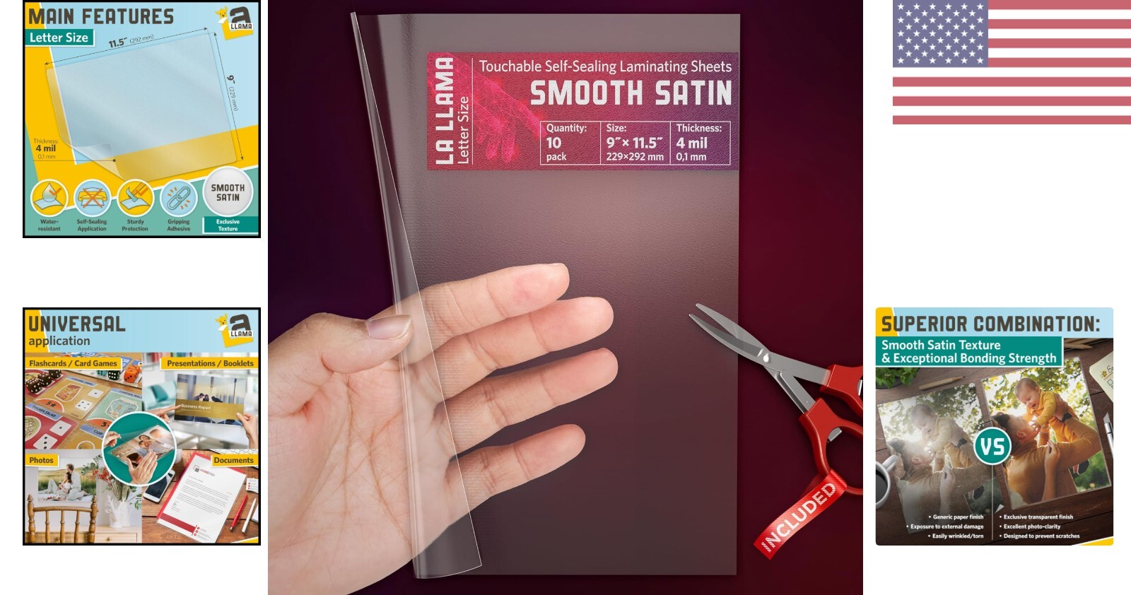 Self Adhesive Laminating Sheets - Smooth Satin Finish - 9x11.5 Inches - 10 Pack