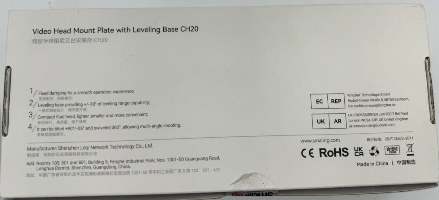 SMALLRIG VIDEO HEAD MOUNT PLATE WITH LEVELING BASE CH20 NEW IN BOX