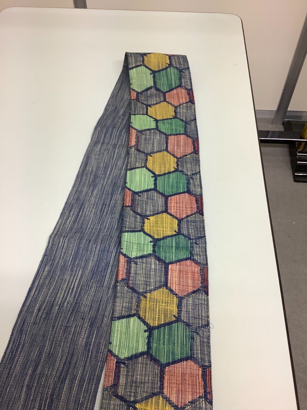 как выглядит Japanese Vintage Kimono Han Obi cotton navy blue hexagonal 137.7x5.9inch фото