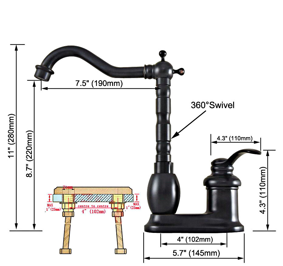 Black Brass 2 Hole Swivel Spout Kitchen Sink Faucet Bathroom Basin Taps 2nf833