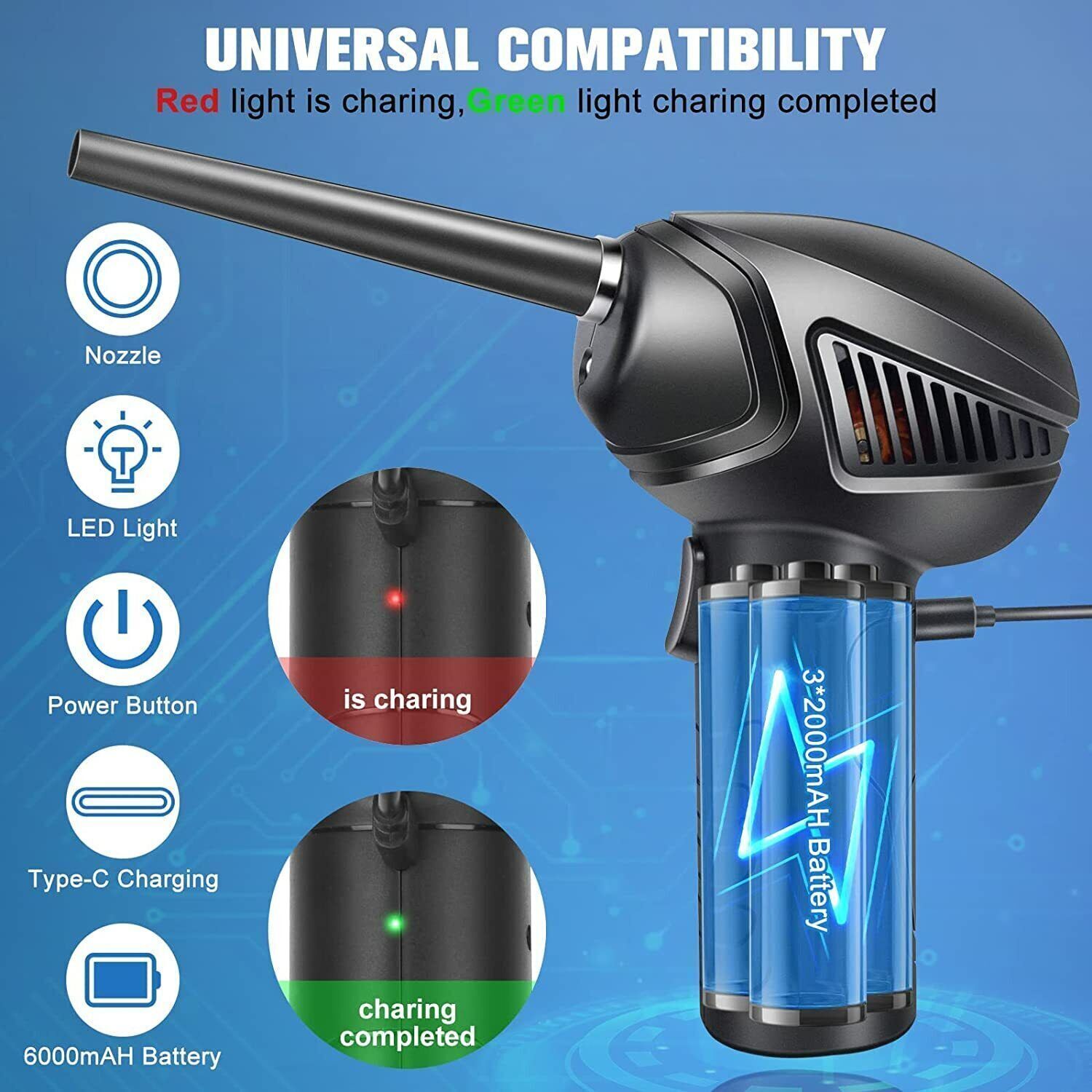 Portable 6000mAh Electric Cordless Air Duster Rechargeable Battery For Computer