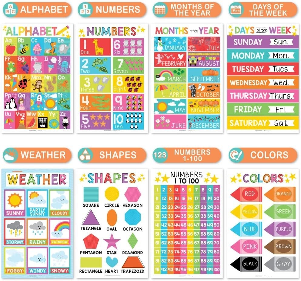 Educational Posters for Classroom Kindergarten - ABC Alphabet, Shapes, Worl...