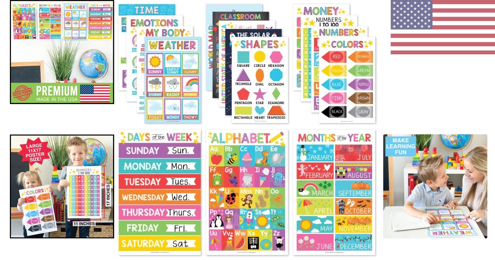 • Educational Posters for Classroom Kindergarten - ABC Alphabet, Shapes, Worl...