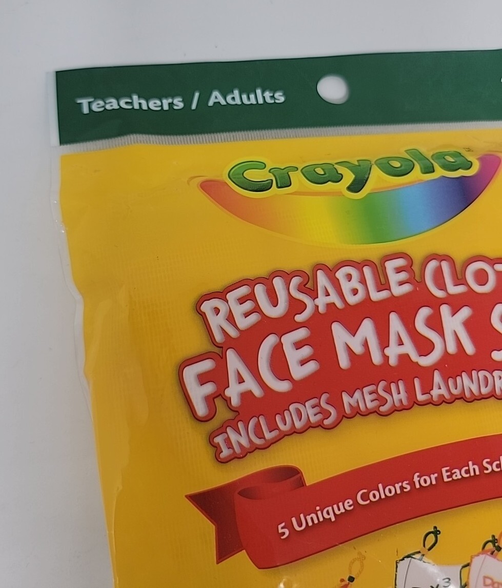 Crayola 5pcs Reusable Cloth Face Mask Set Multicolor Mesh Bag Teachers/Adults