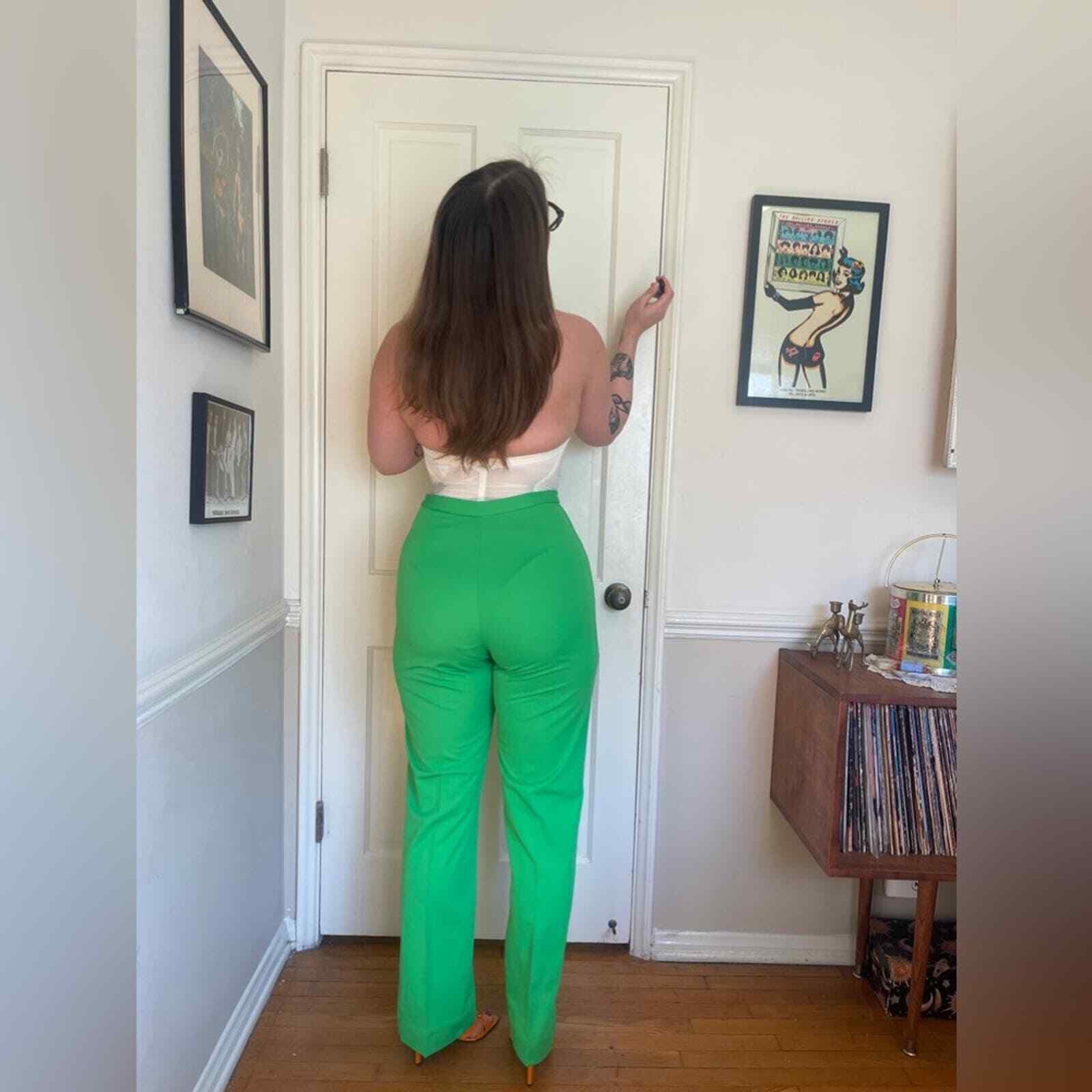 как выглядит 70s Vintage Lime Green High Waisted Double Knit Poly Pants фото