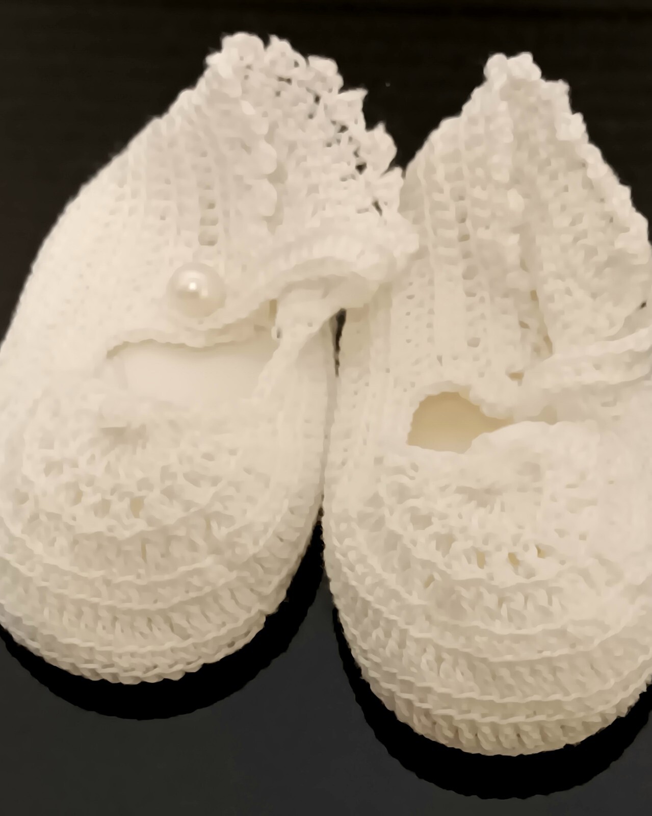 как выглядит Vintage White Crochet Laced Faux Pearl Newborn Baby Shoes Booties 2 Pairs фото