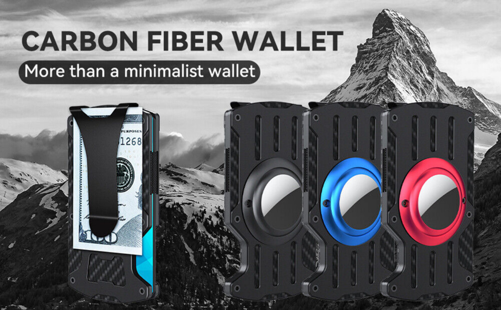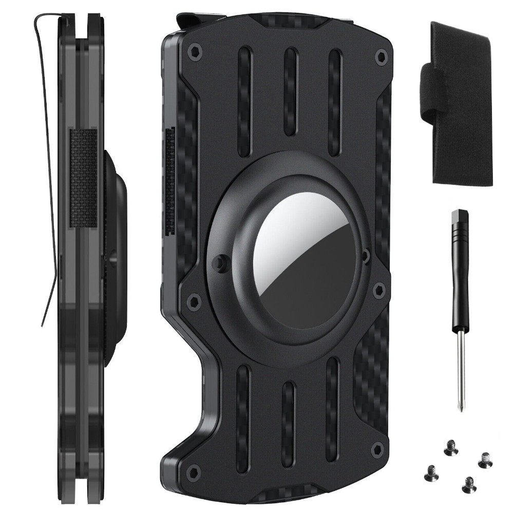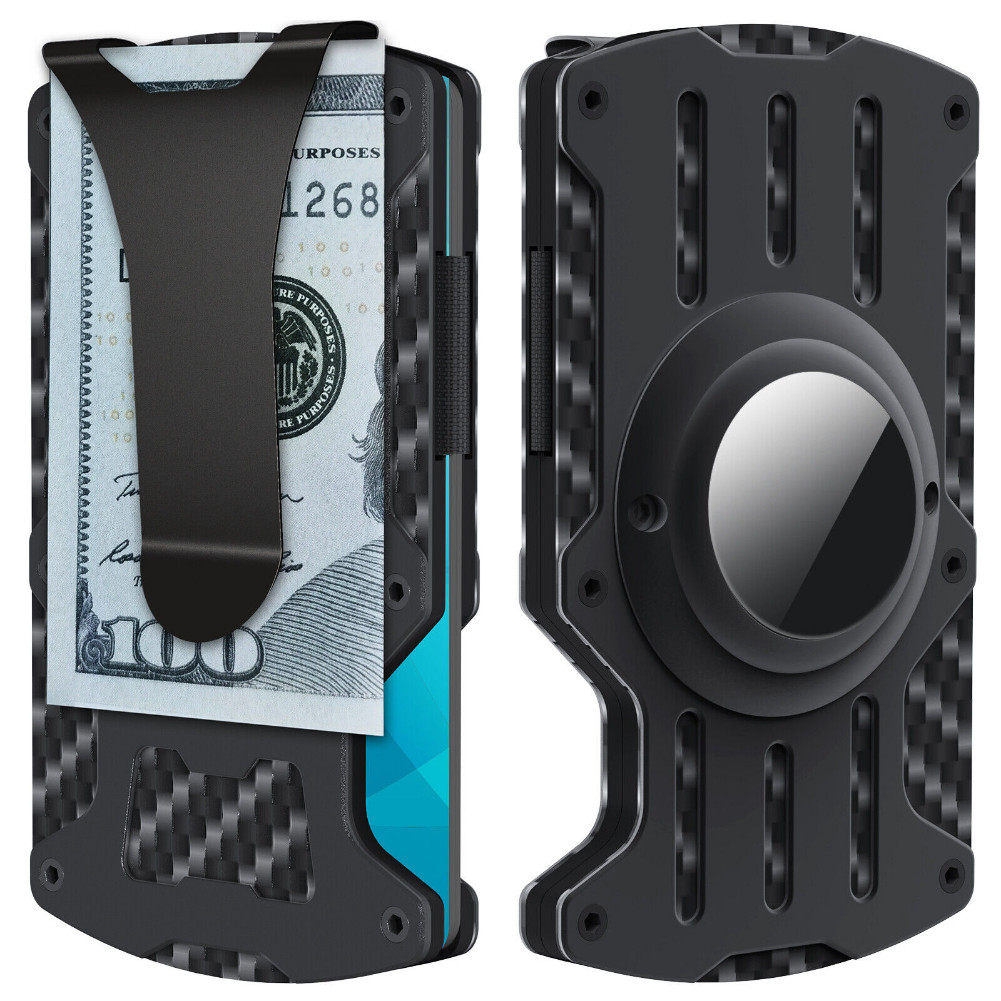 For AirTag Wallet Men Slim RFID Blocking Minimalist Metal Holder with Money Clip
