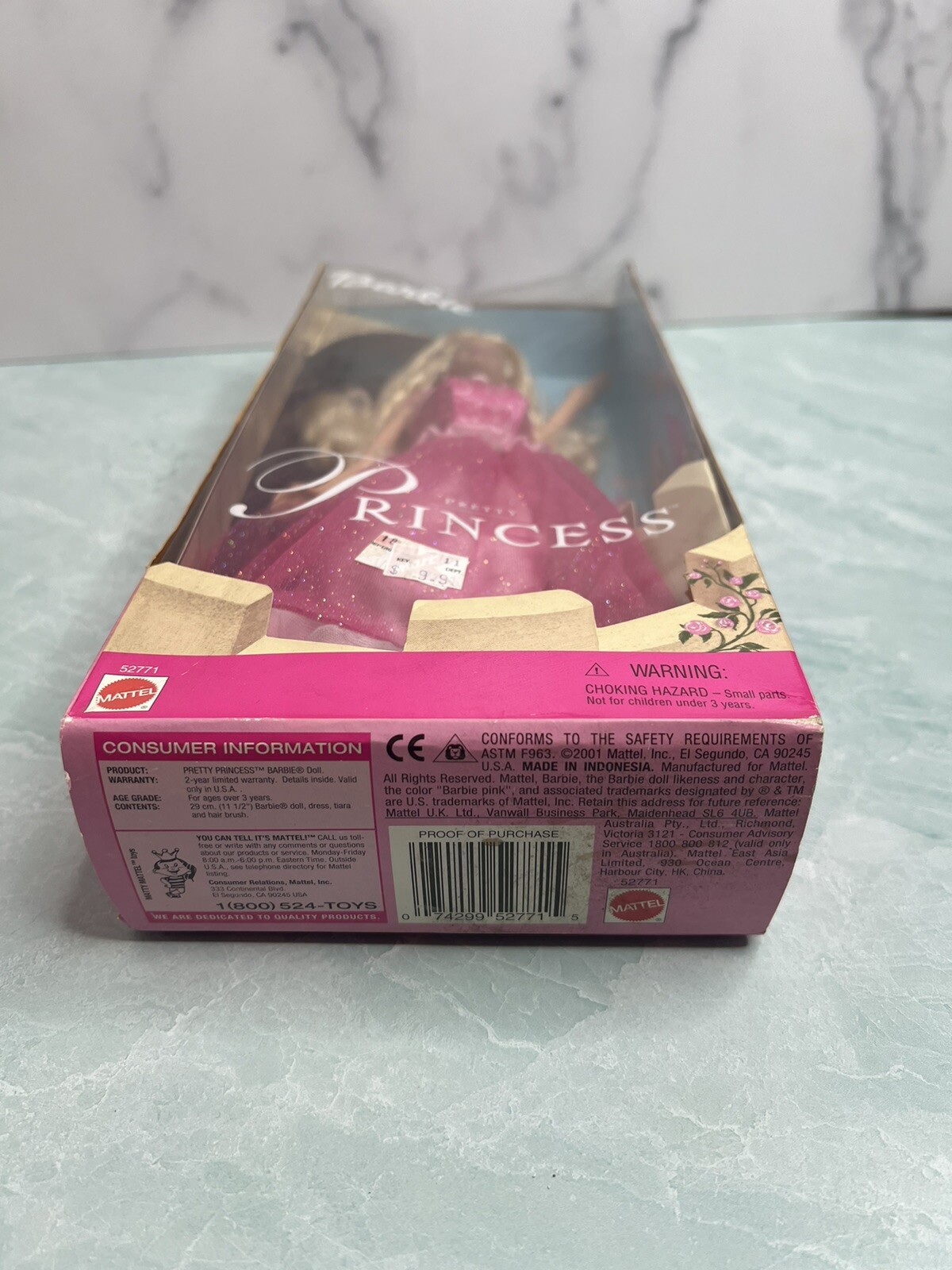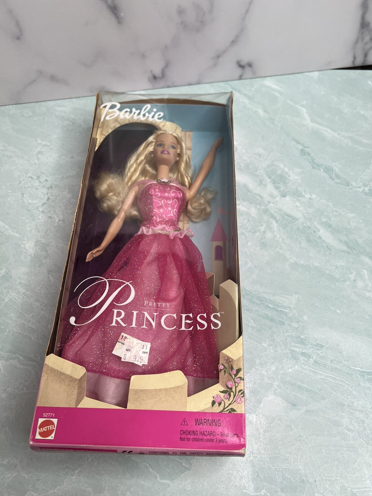 Pretty Princess Barbie Doll 2001 Mattel 52771 NRFB pink gown tiara curly hair