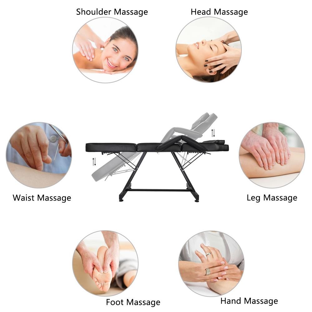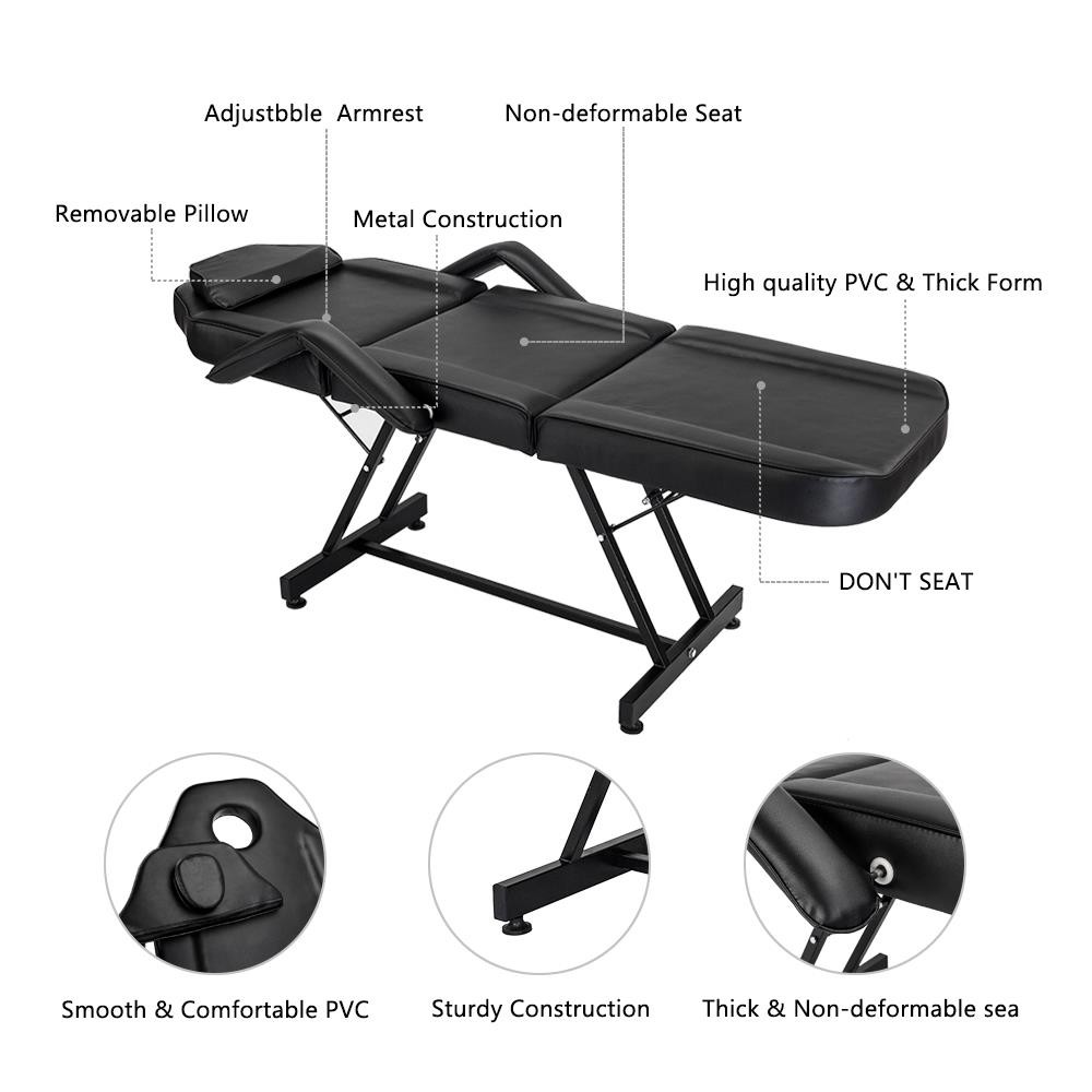 Adjustable Beauty Salon SPA Massage Bed Tattoo Table Chair with Stool Set Black