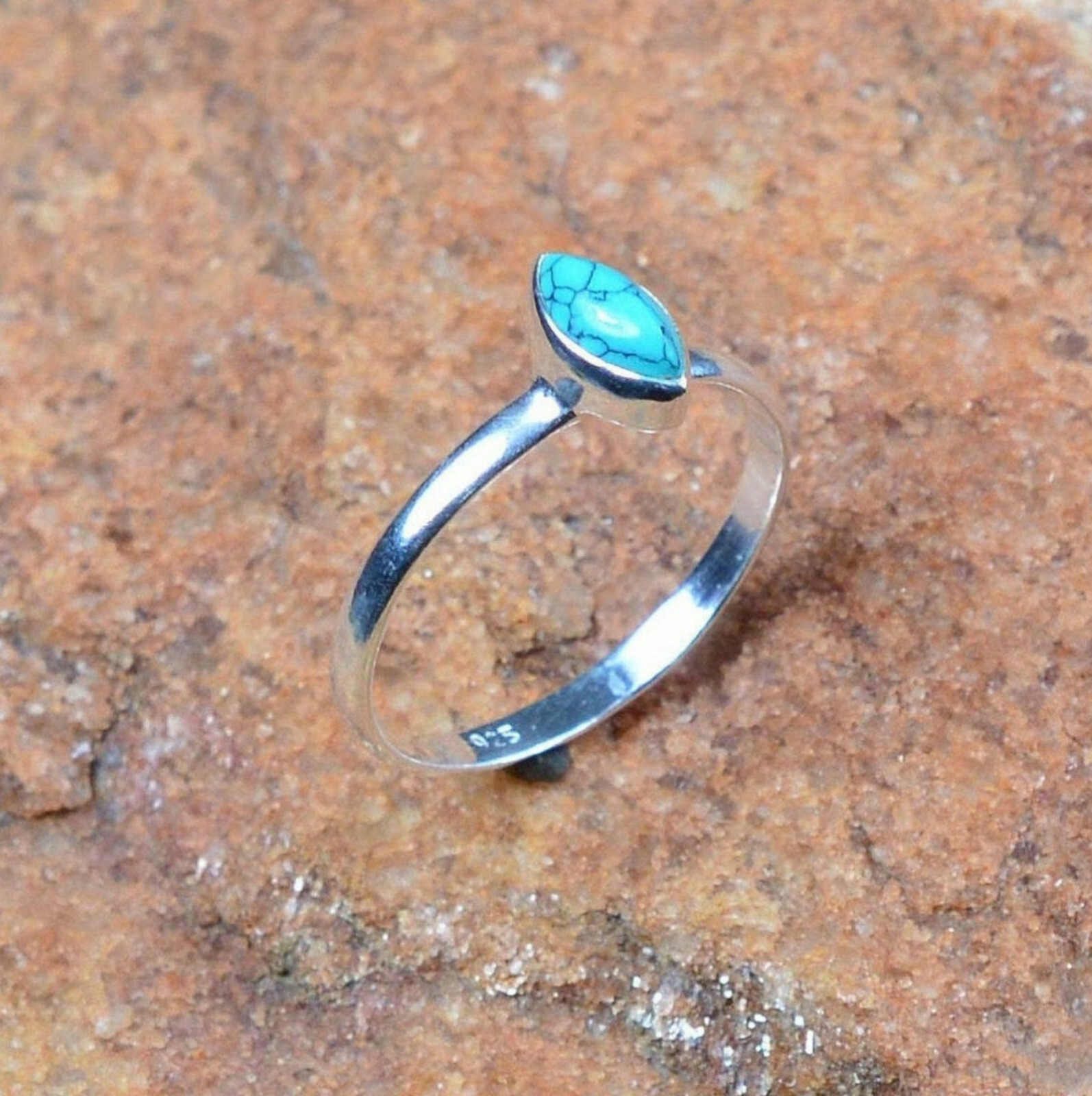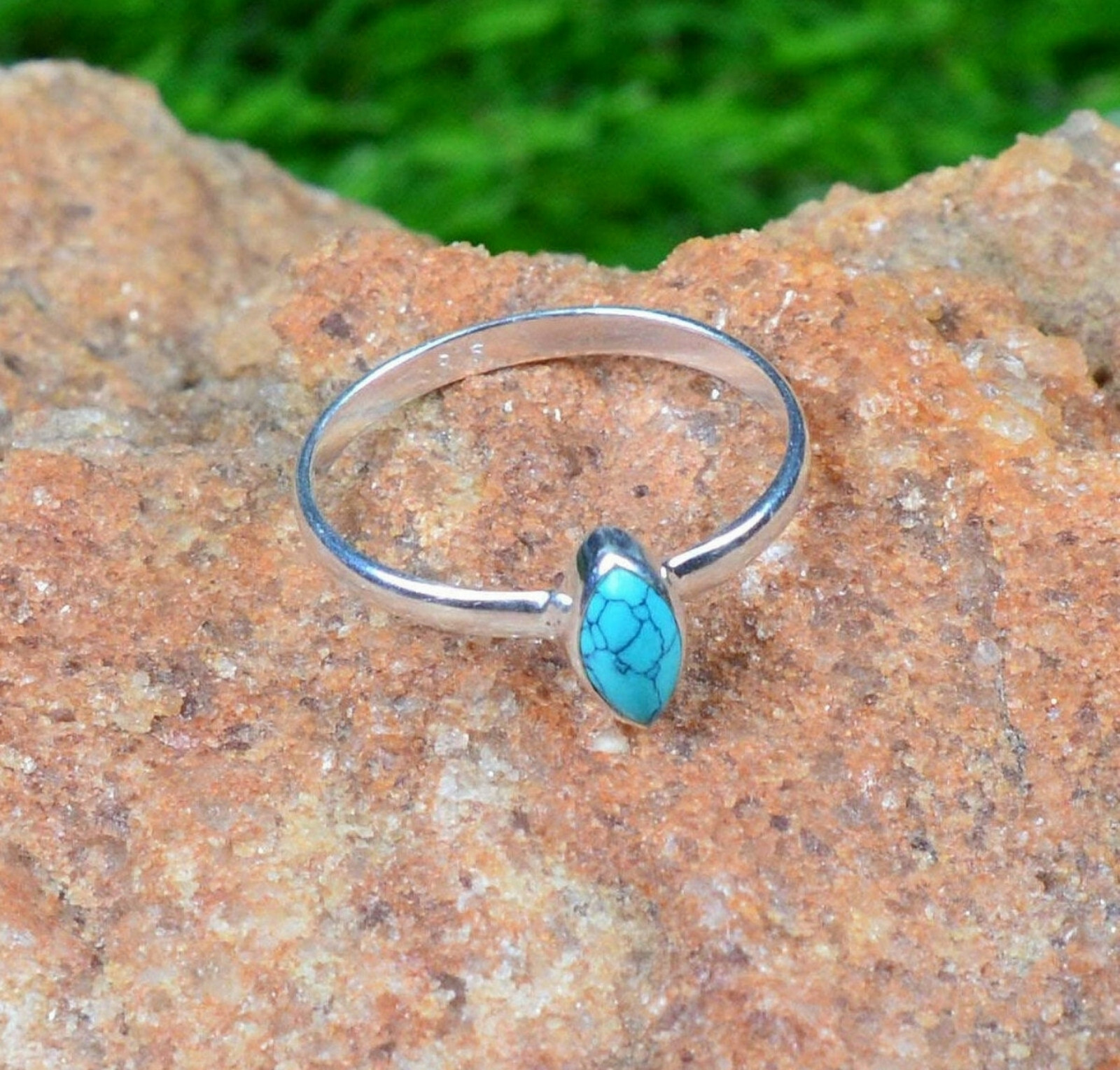 как выглядит Blue Turquoise Ring 925 Silver Handmade Jewelry Gift For Her ring All Size фото
