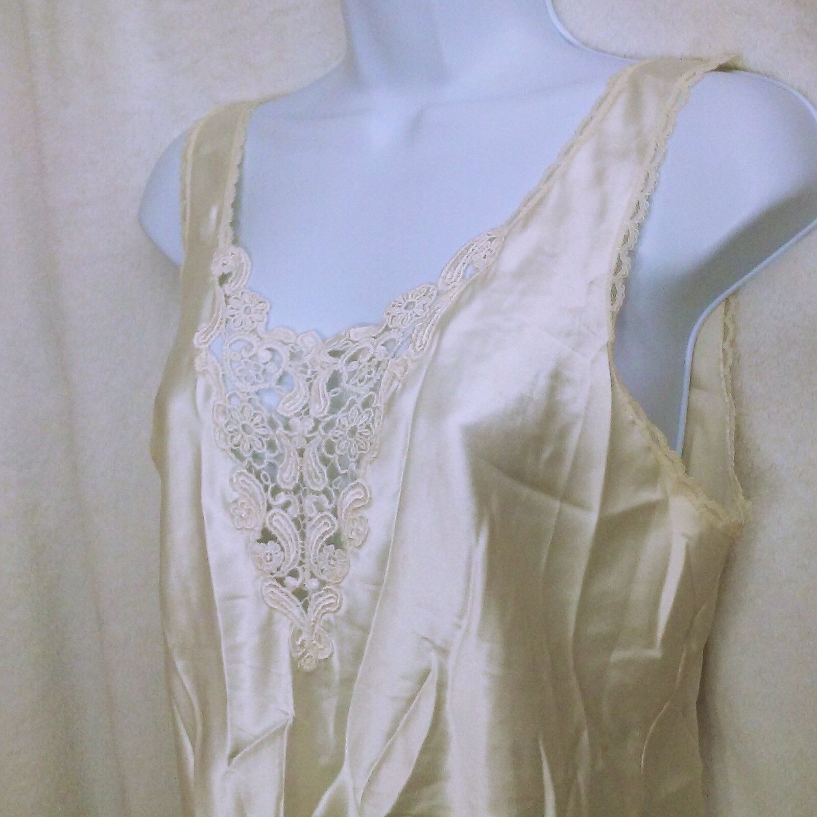 как выглядит Vintage 80s Cinema Etoile Satin Camisole Tank Top -M 8 Lace V-Neck Trim Ivory фото