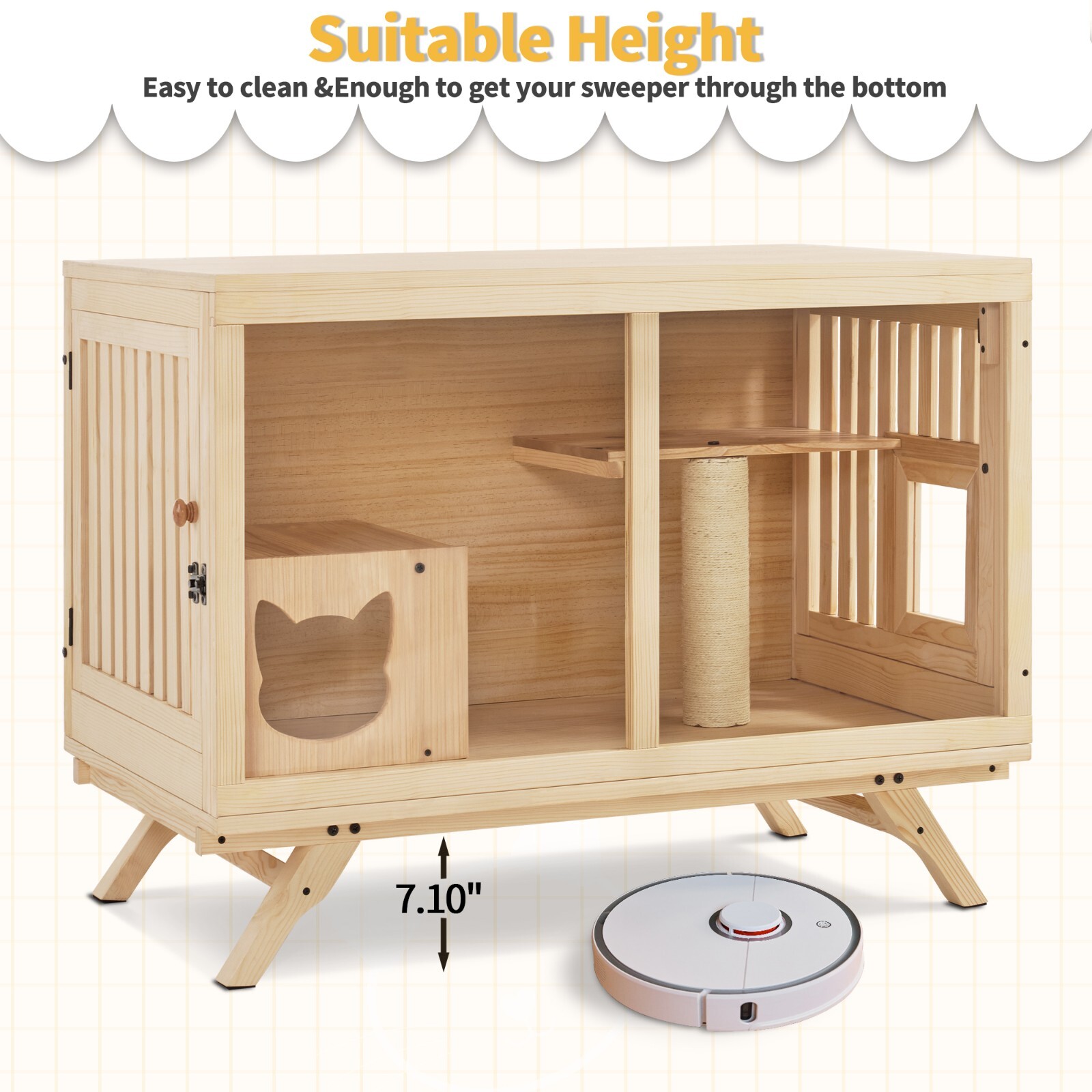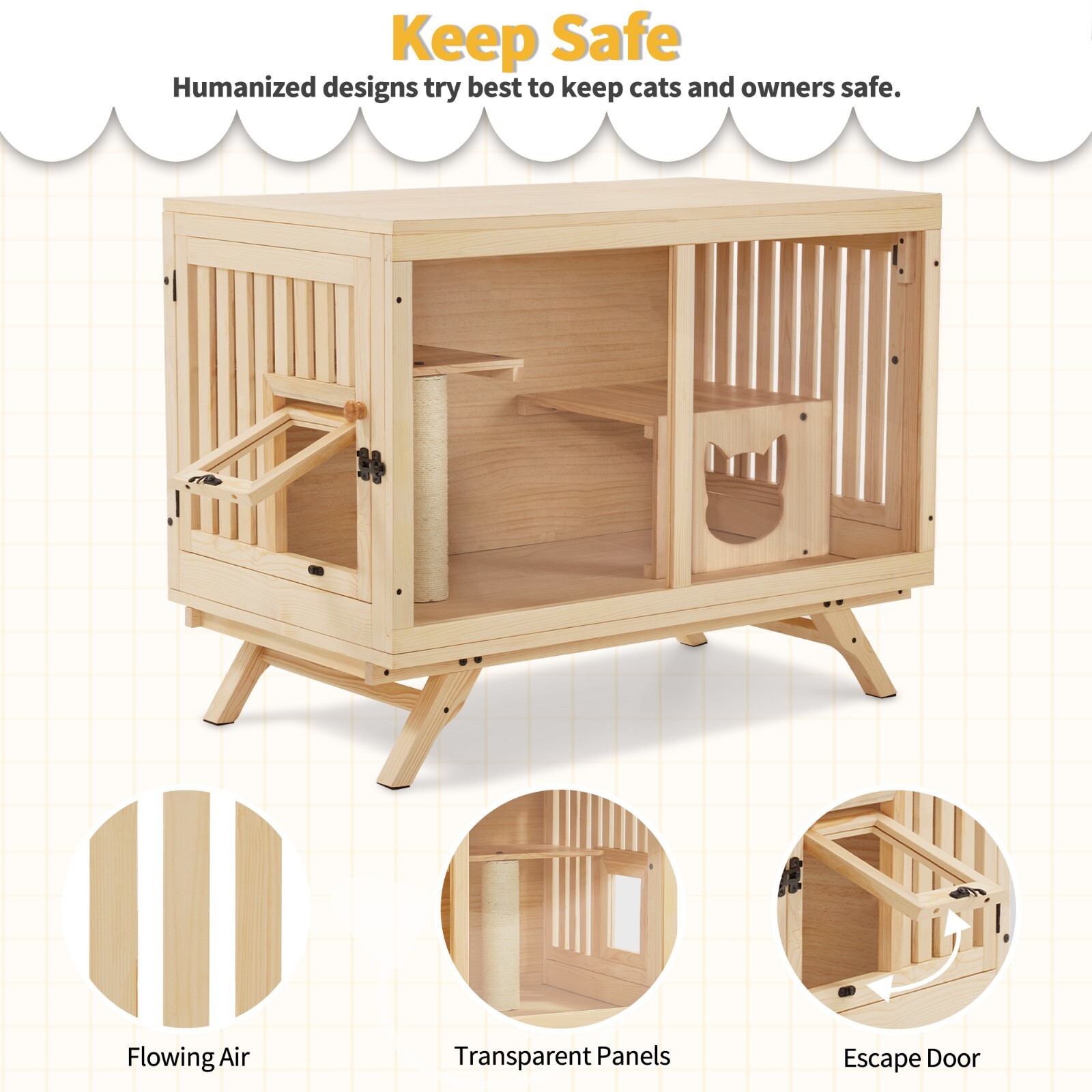 Lovupet Wooden Cat House Villa, Wood Cat Condo Indoor with Scratching Post CT55
