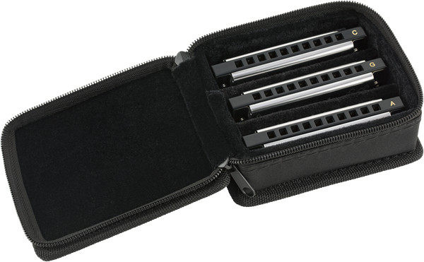 Fender Blues Deluxe Harmonica PACK OF 3 with Case - Keys C, G, A