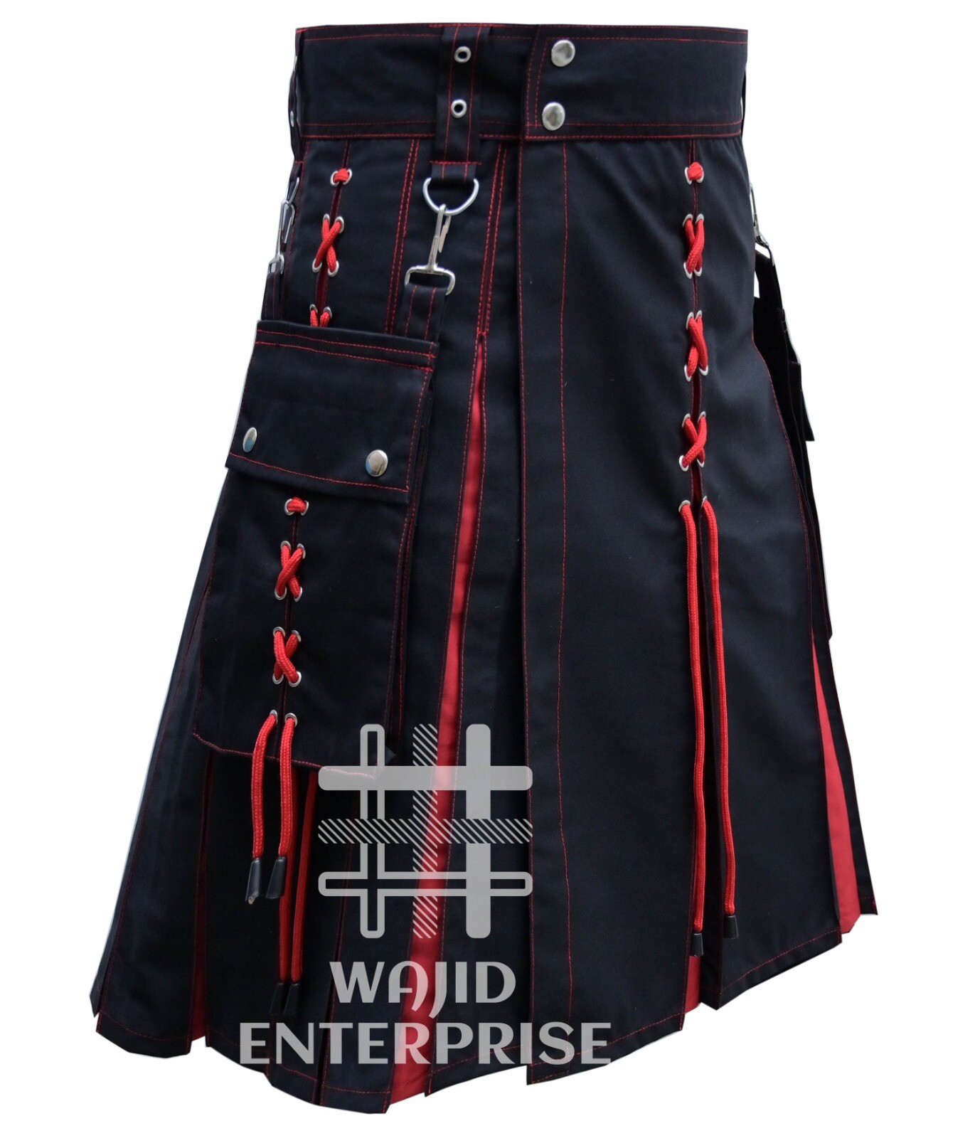 Scottish Handmade Black Red cotton Hybrid Utility Kilt - Men's Fashion Kilt