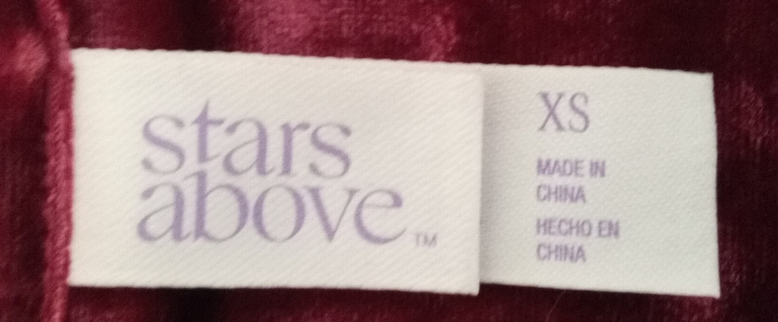 Star Above Women Pajamas Velour Top Burgundy Size XS