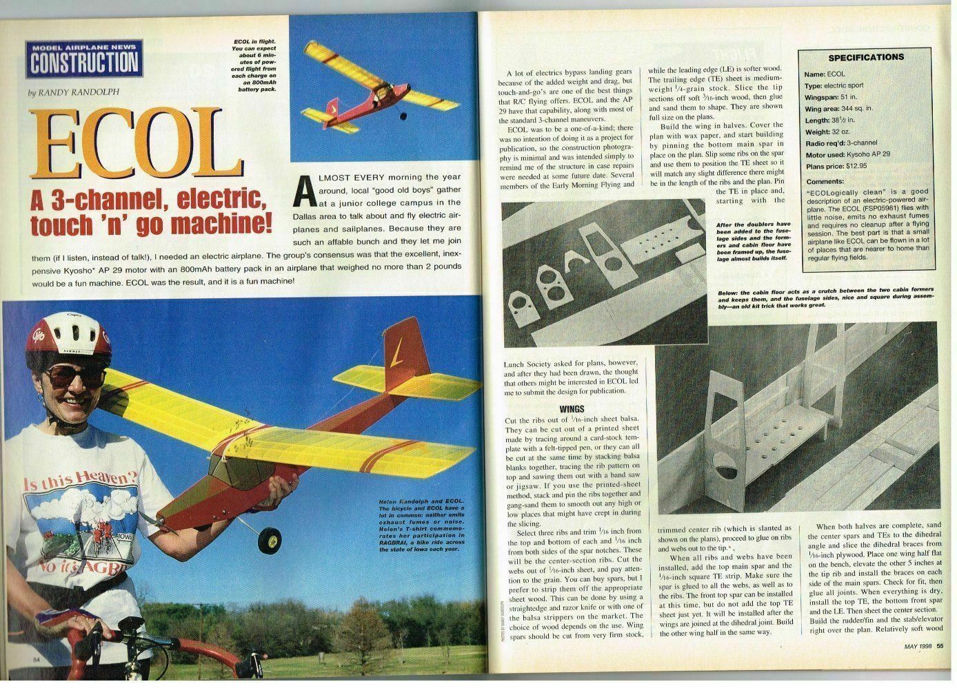 MODEL AIRPLANE NEWS Magazine May 1998 ECOL A 3-channel, electric