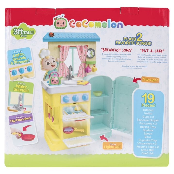 как выглядит CoComelon 3 Feet Tall Little Kitchen Playset With Lights Sounds - 19 Pieces фото