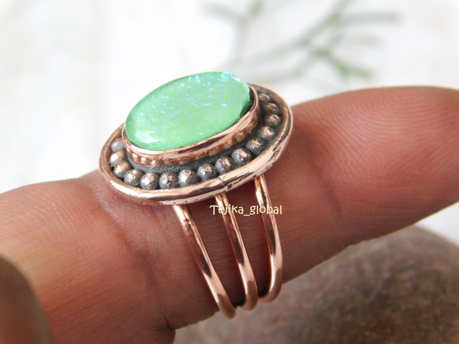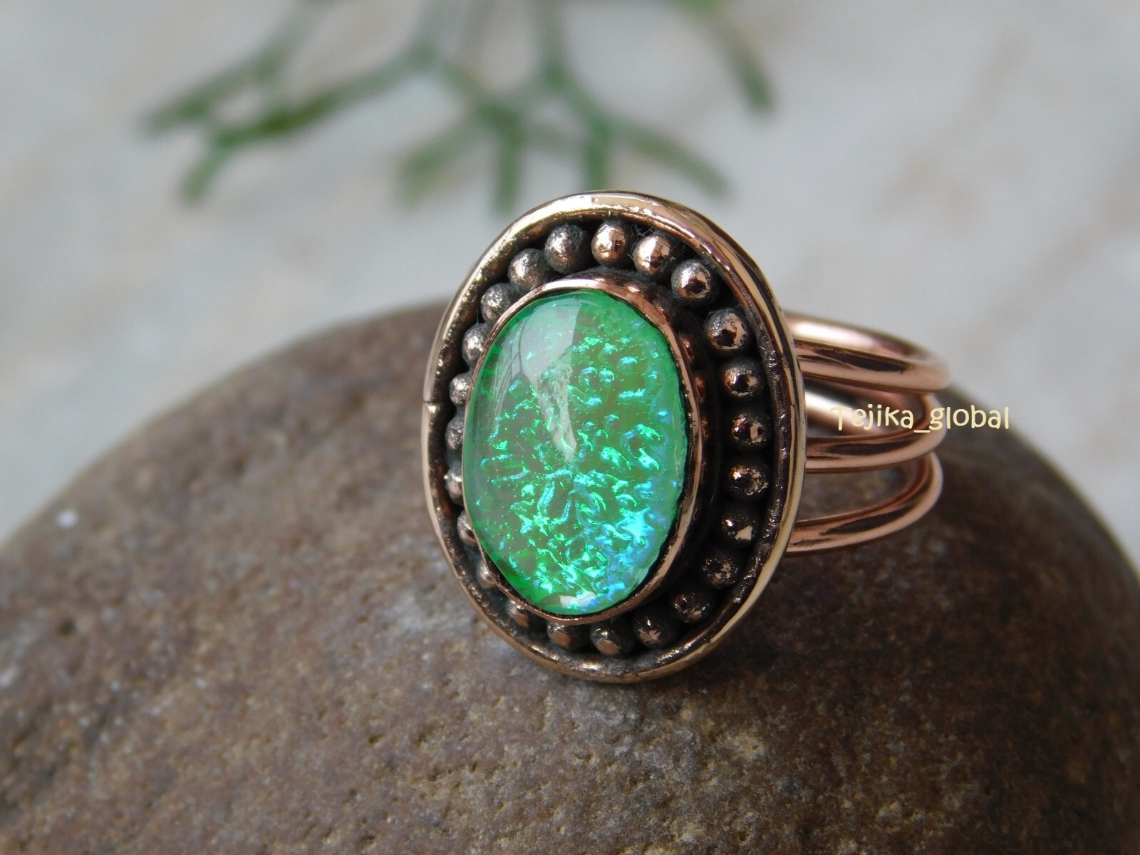 как выглядит Blue Australian Triplet Opal Handcrafted Solid Copper arthritis relief ring, фото