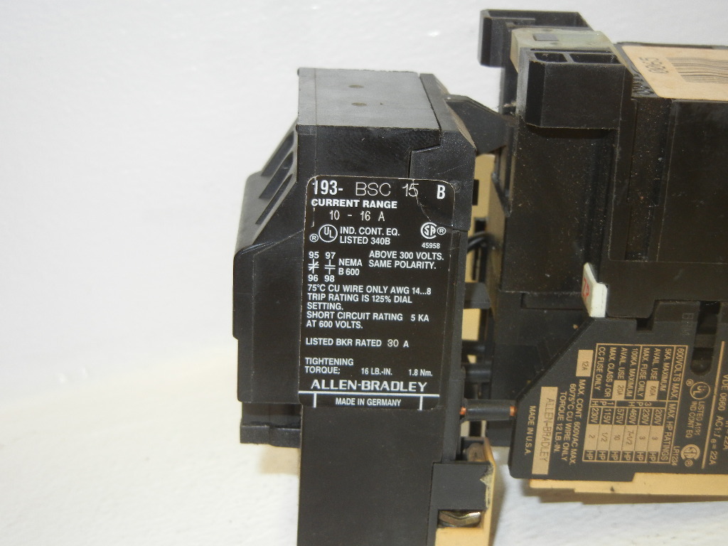ALLEN BRADLEY 100-A12ND3 USED CONTACTOR WITH 193-BSC15 OVERLOAD RELAY 100A12ND3