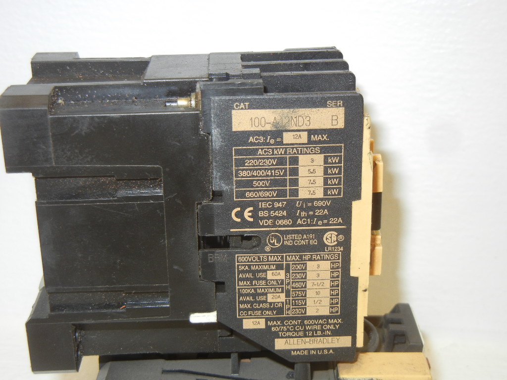 как выглядит ALLEN BRADLEY 100-A12ND3 USED CONTACTOR WITH 193-BSC15 OVERLOAD RELAY 100A12ND3 фото