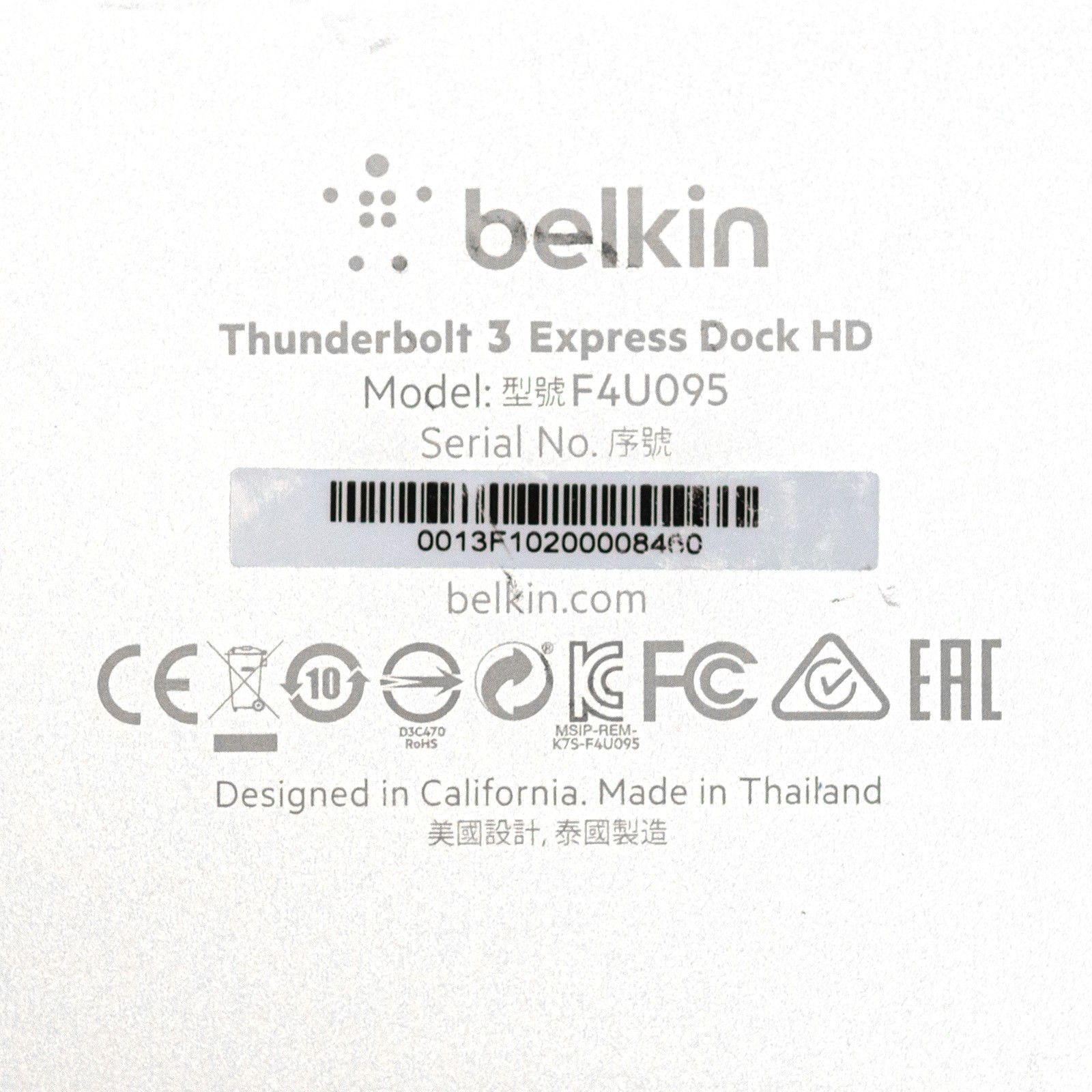Belkin Thunderbolt 3 Express Dock HD F4U095 DP USB 3.0 MacBook Docking Station