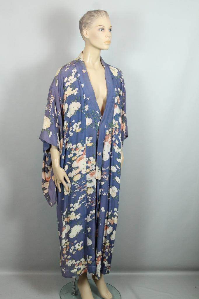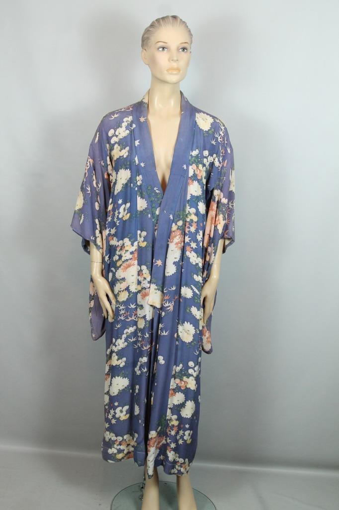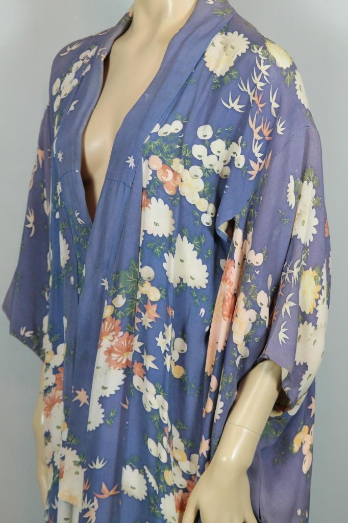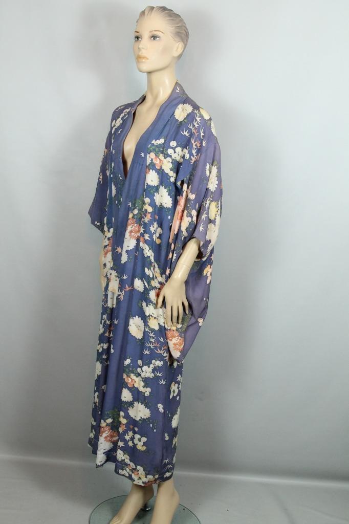 как выглядит Vintage RETRO Purple w/ Floral Traditional Ethnic Chinese Asian Kimono Coat OS фото