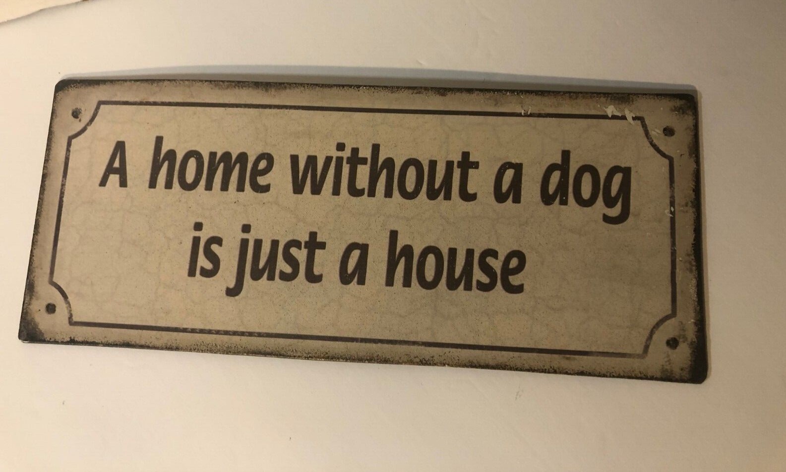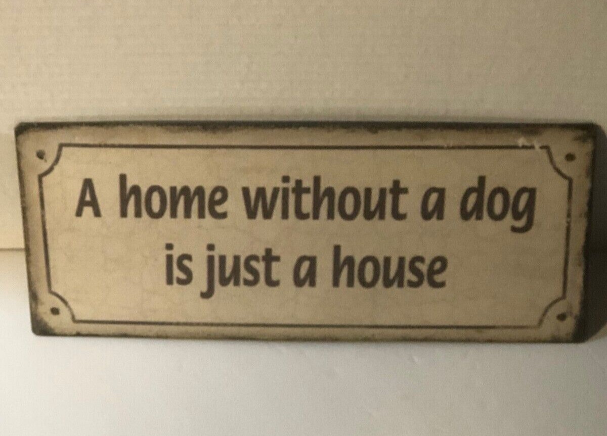 как выглядит A HOME WITHOUT A DOG IS JUST A HOUSE metal sign 5" x 12" rectangular wall decor фото