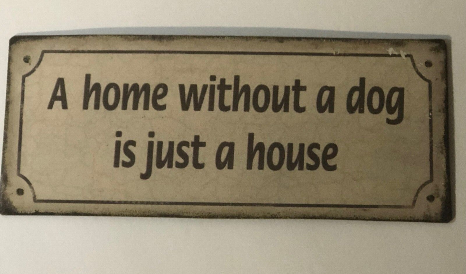 A HOME WITHOUT A DOG IS JUST A HOUSE metal sign 5 x 12 rectangular wall decor