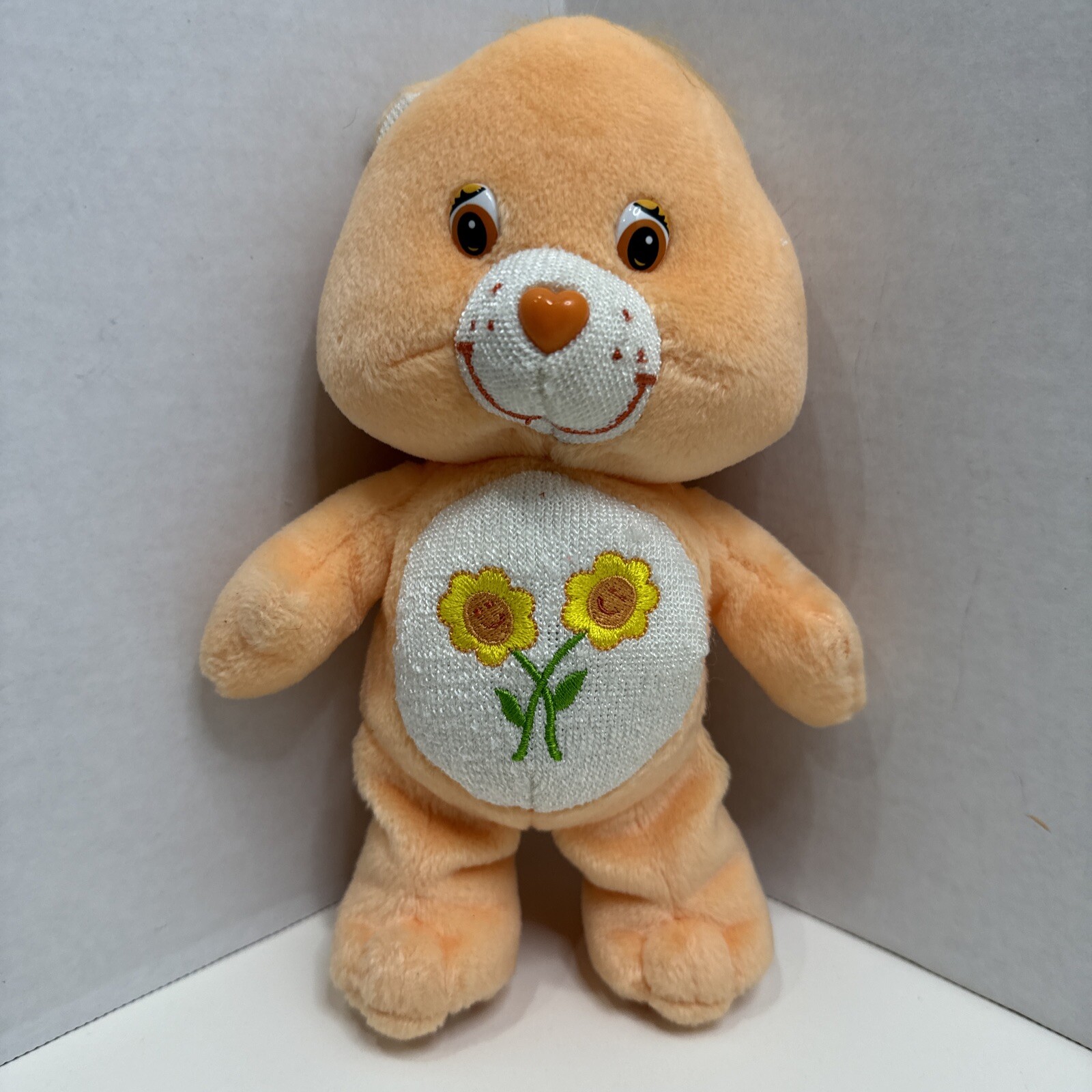 Care Bears FRIEND BEAR Plush Orange Peach Flowers 8 2002 Stuffed Animal