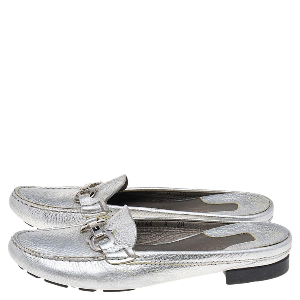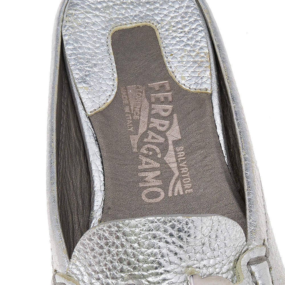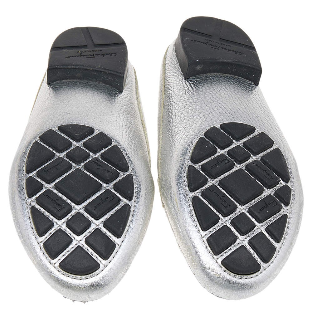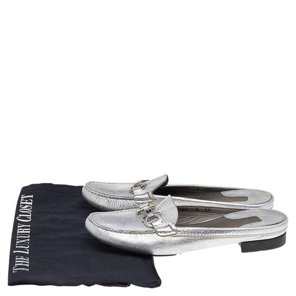 Salvatore Ferragamo Silver Leather Gancini Slip On Mules Size 38.5