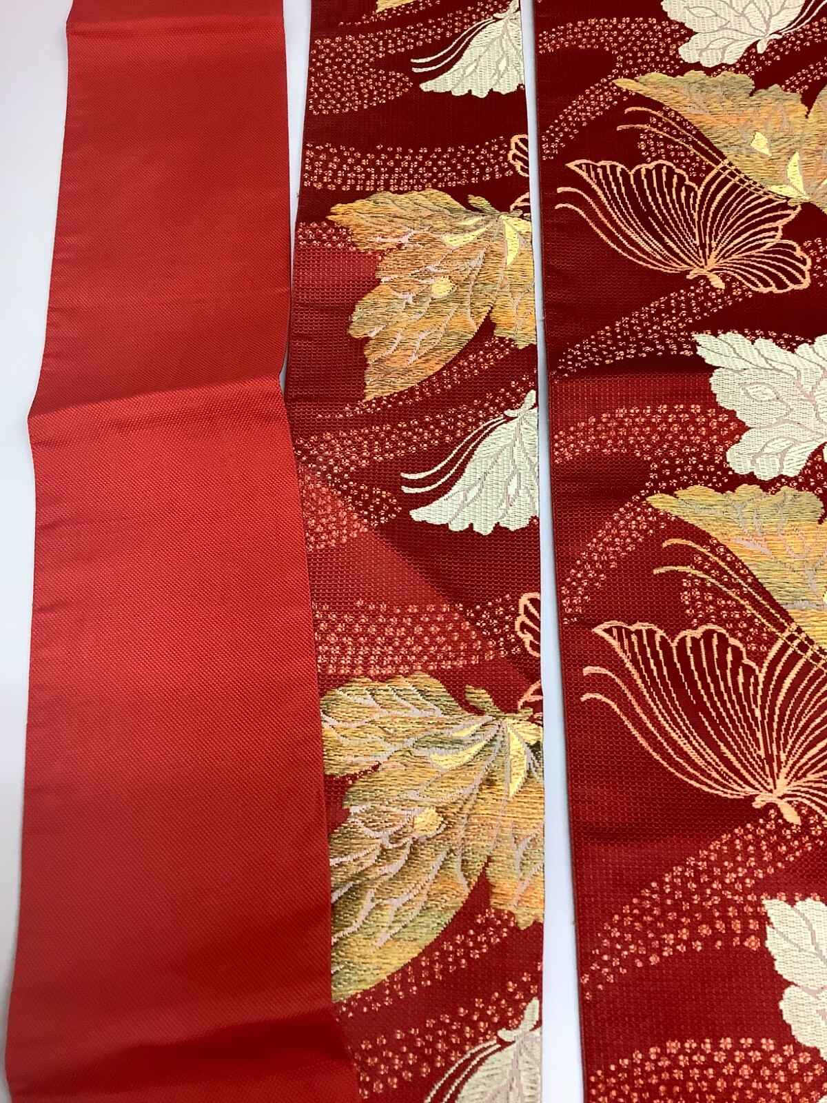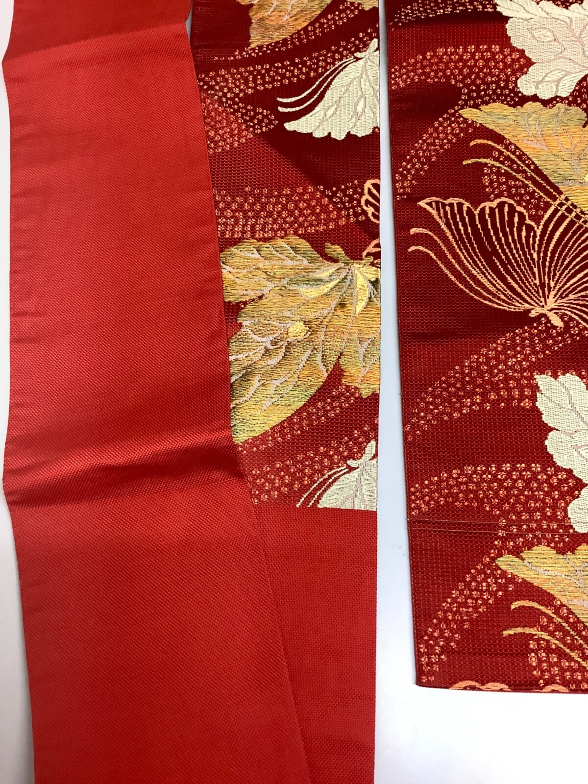 Japanese Vintage Kimono Nagoya Obi pure silk light brown butterfly 142.5x11.8in