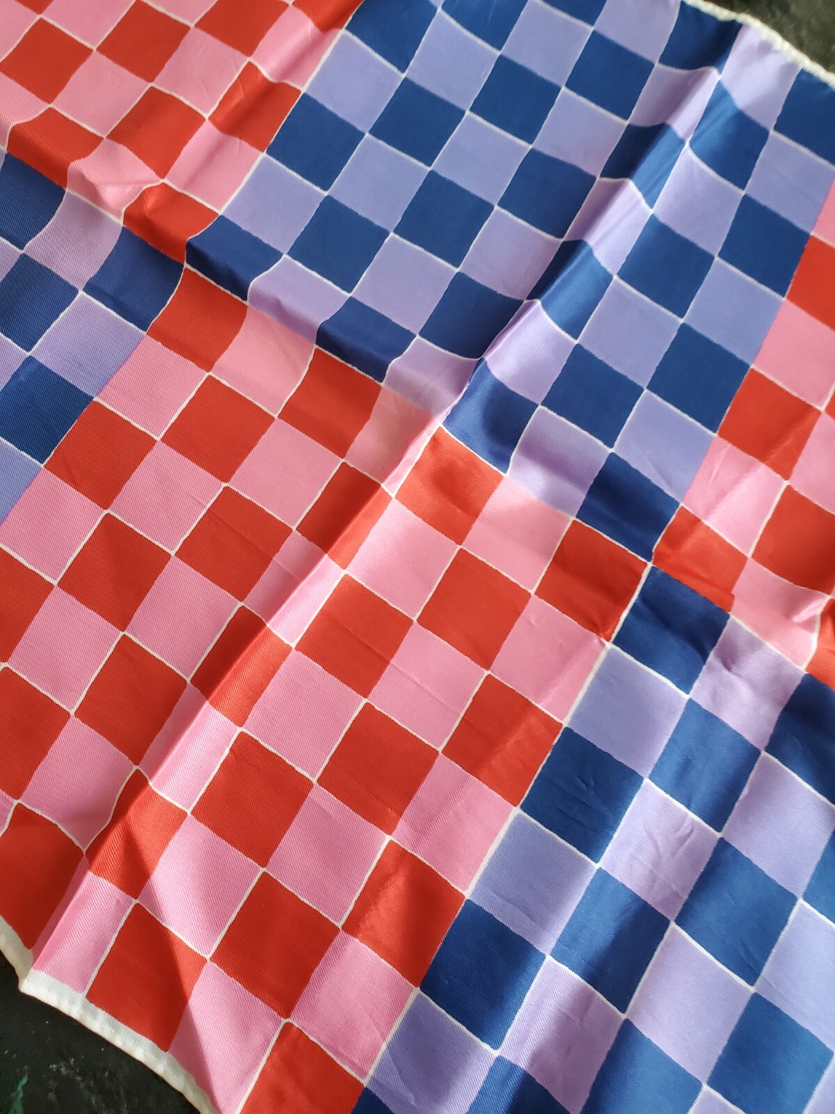 как выглядит 1960s Mod Scarf, Acetate Hand Roll Stitched in Japan Pink and Purple Chequered фото