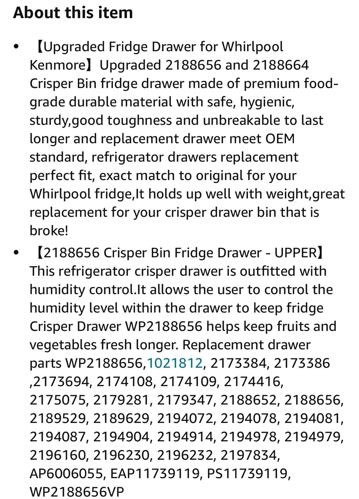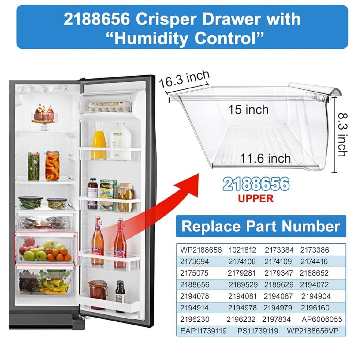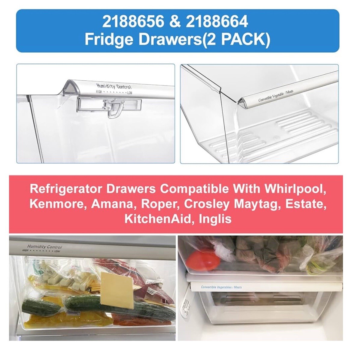 Upgraded 2188656 Fridge Crisper Drawer - 2 Pack - Upper Lower