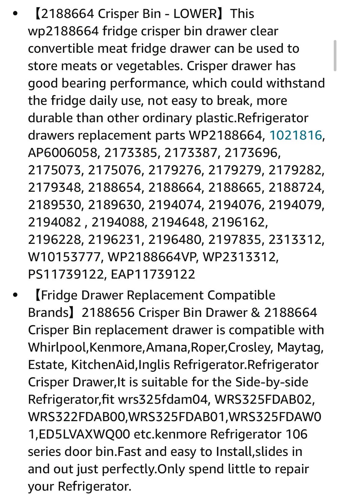 как выглядит Upgraded 2188656 Fridge Crisper Drawer - 2 Pack - Upper Lower фото